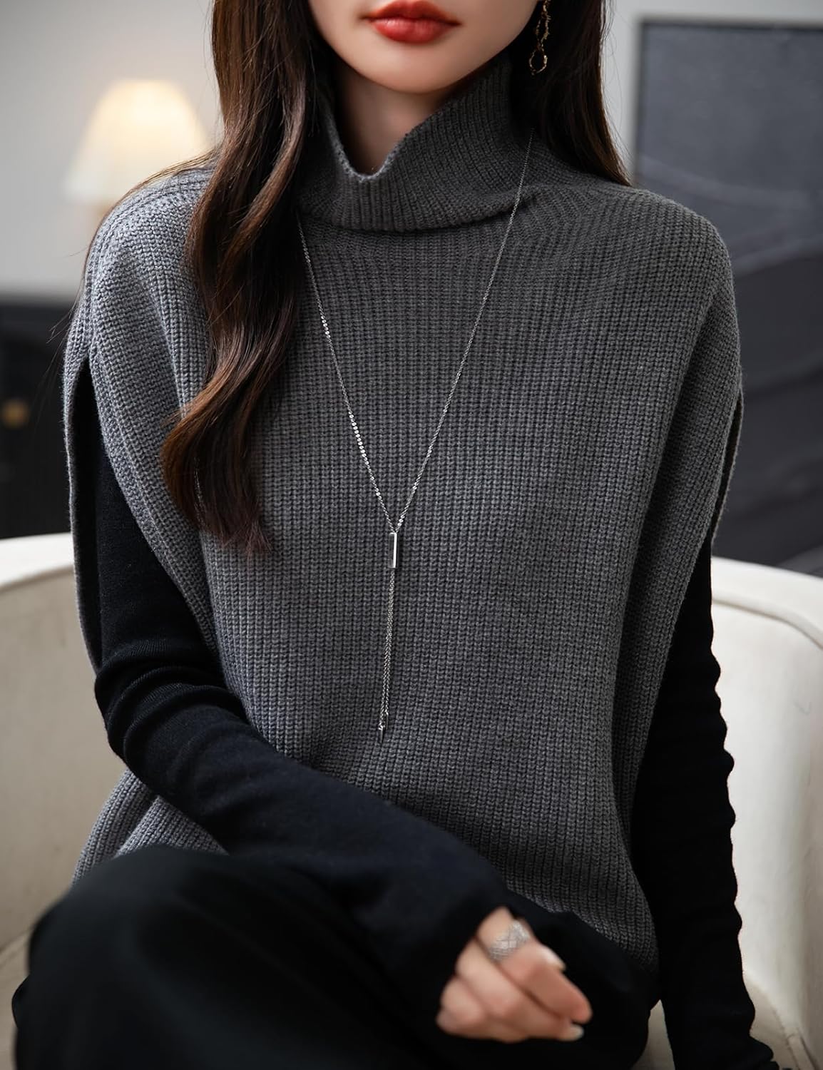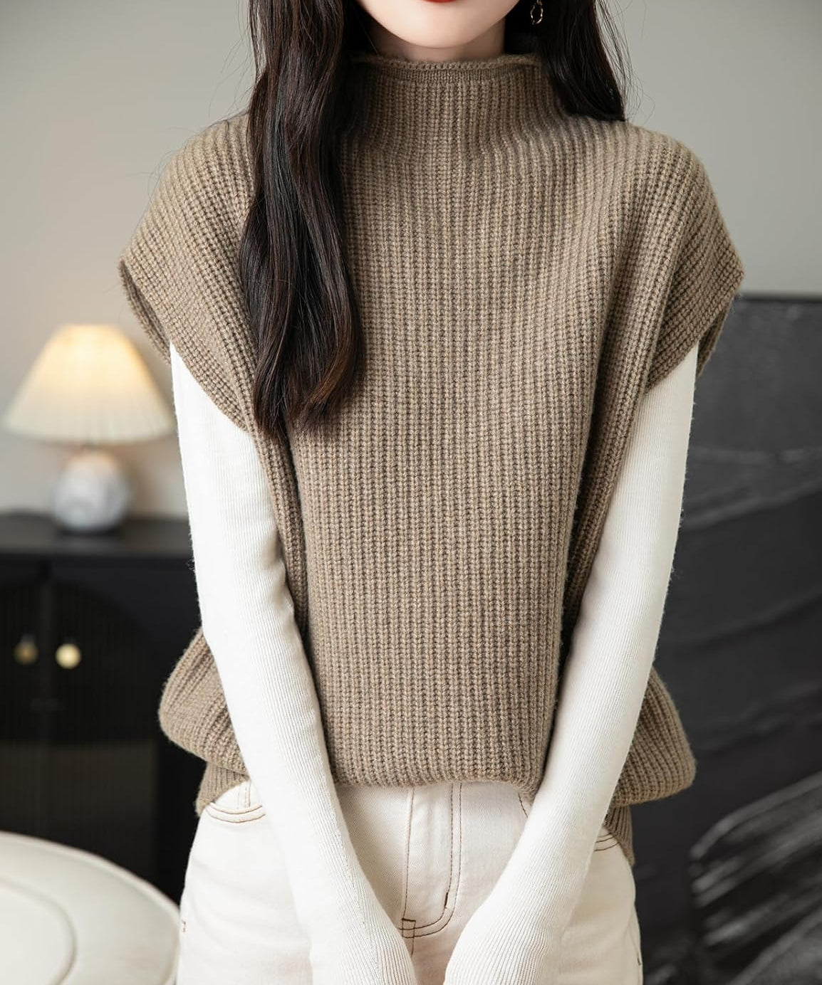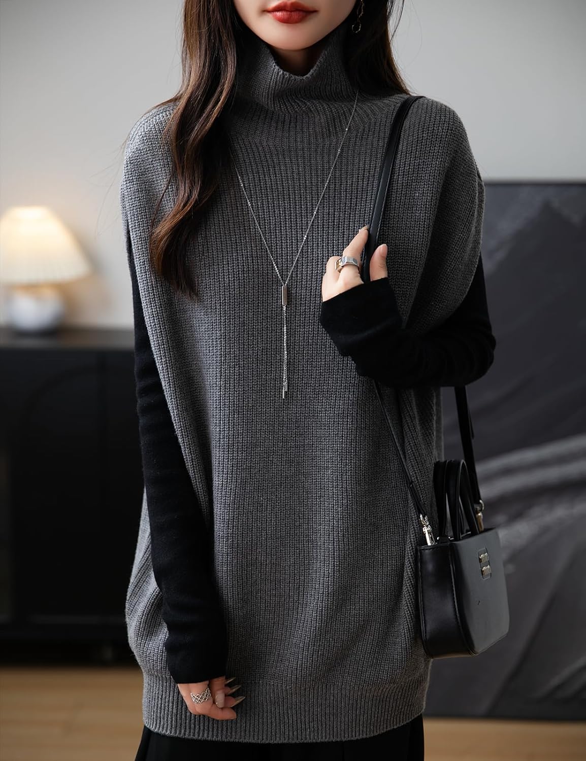 This oversized turtleneck sweater vest is crafted from a refined blend of Merino wool, anti-pilling fibers, and recycled polyester — balancing softness, durability, and sustainability. The seamless drape and clean silhouette embody understated sophistication, making it an essential layer for every season. Whether paired with tailored shirts or worn solo, it reflects a calm confidence — simple, timeless, and beautifully refined.