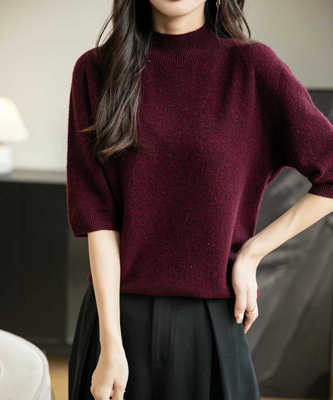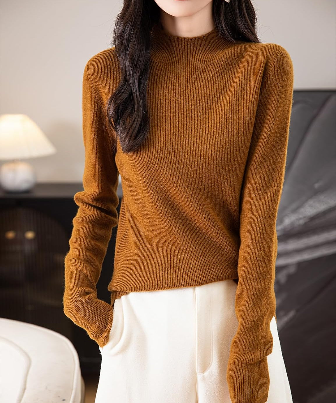 Mock neck sweater, slim fit, medium thickness. Clasic rib design can better highlight your figure. This sweater adopts advanced seamless knitting technology, no cutting, no seams, soft and comfortable and smooth lines, makes it more comfortable to wear, won't feel tight and rub against the skin when wearing it. It is a must-have in the spring, autumn and winter wardrobe.