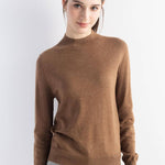 This sweater is perfect for fall. I plan on wearing it for the winter also but the espresso brown color is perfect for any autumn outfit. The fabric is not as soft as I would like but it is not itchy enough that I can't wear it. It fits very true to size, and the sleeves are a great length for us ladies with long arms. Very nice quality. I like that the mock neck does not come up too high to be annoying, it is a perfect cut. Overall great addition to your fall/winter wardrobe.