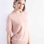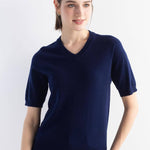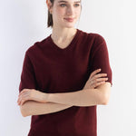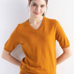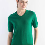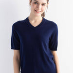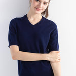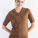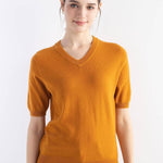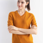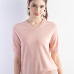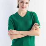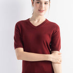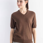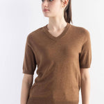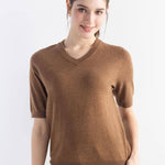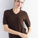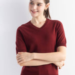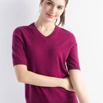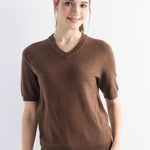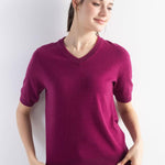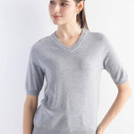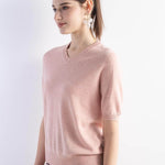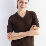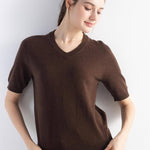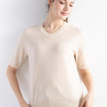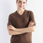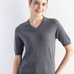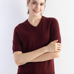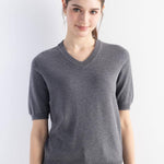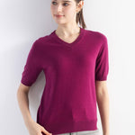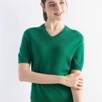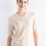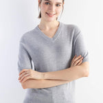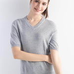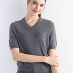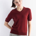Merino Wool V-Neck Short Sleeve Seamless Knit Sweater