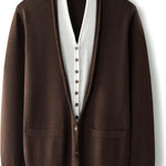 This Ciovkis merino wool blend sweater is a beautiful piece for cooler weather. The “fake two-piece” design is clever — it gives the layered cardigan look without the bulk of wearing two separate items. The color block style in coffee is classy and works with just about anything in my wardrobe.The fabric is soft, warm, and has that nice merino wool feel without being itchy. The medium fit is true to size, flattering but not too tight, and the V-neck gives it a slightly dressier edge so it works for casual days or business casual outfits.I’ve washed it once on delicate and it held its shape and color nicely. A great find if you want something versatile, stylish, and practical for fall and winter.