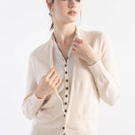 Merino Wool Fake Two-Piece V-Neck Color Block Knit Top