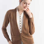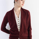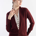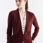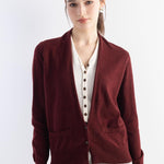 This faux two piece “look” cardigan will be great for fall. Burgundy color is nice and rich. While it does have a lower percentage of wool, you still may want to wear an undershirt if you are sensitive to wool (I can feel the wool on my skin) This means that it will be warm so this particular color will work into winter and will be great around the holidays paired with a dark skirt. I took off a star because the neckline at the back rolls a bit so it lends itself to a bit more casual look (which I wasn’t looking for — but will still wear) Also, its a not as long as I expected and with it being wool, I would be afraid of shrinkage (Lay flat to dry!) I would recommend this if you like the feel of wool and if you are in the market for a top that can be dressed up (a bit) or work with a pair of jeans.