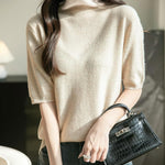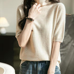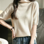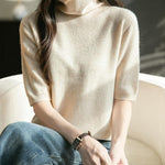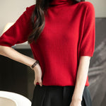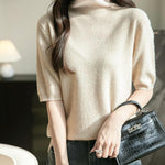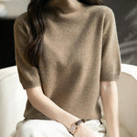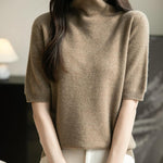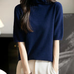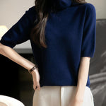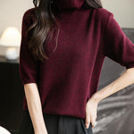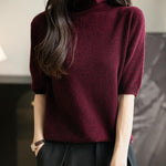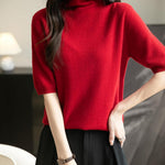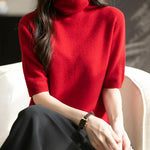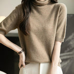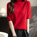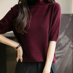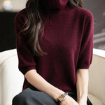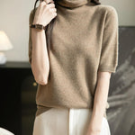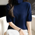 100% Merino Wool Turtleneck Short Sleeve Seamless Sweater