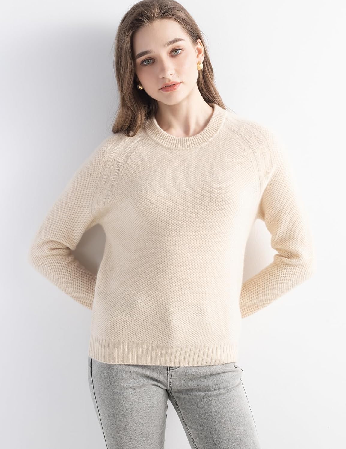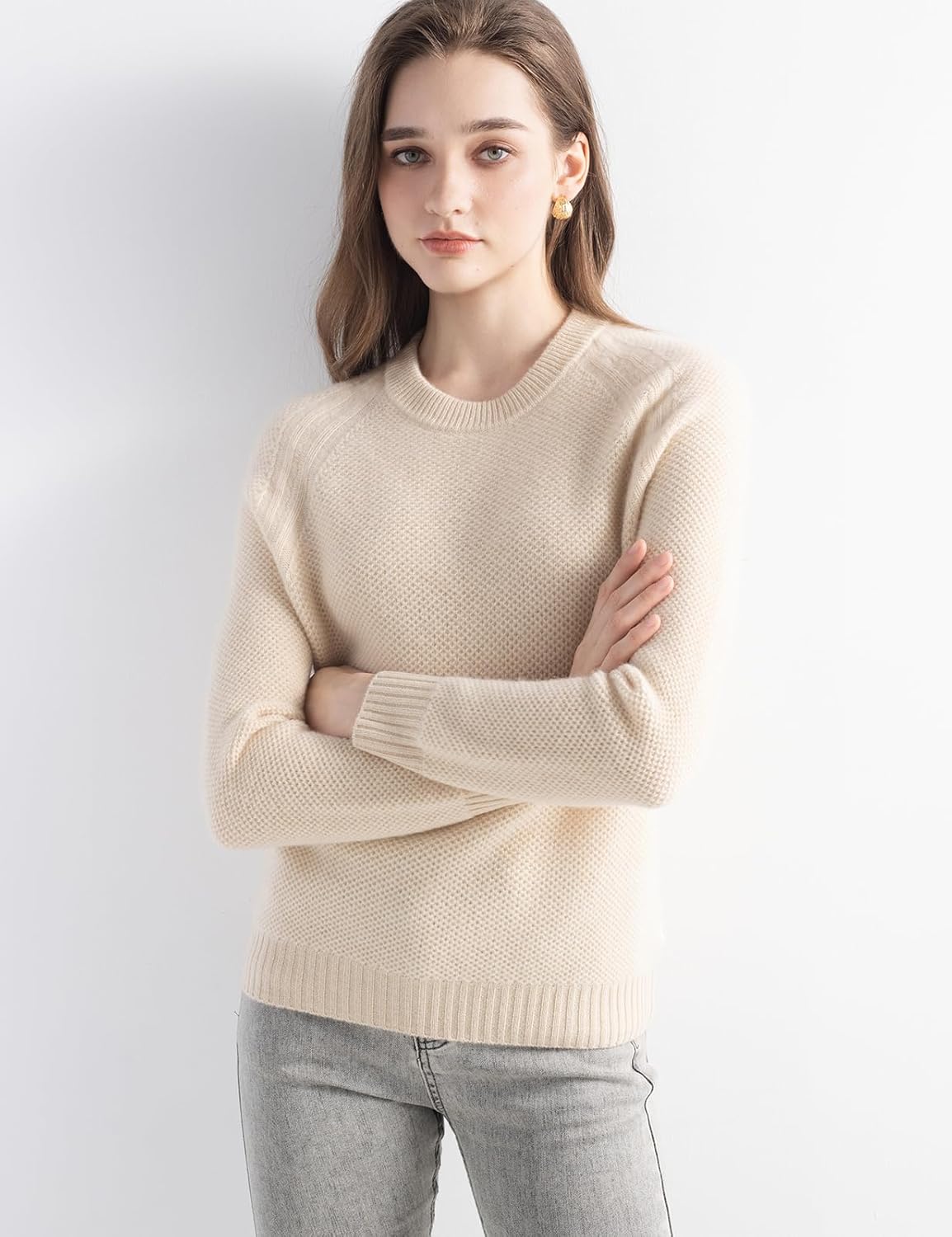 7-gauge high-quality fabric, light to medium thickness. Standard fit, crew neck, long sleeves, classic slim design.Great breathability, suitable for spring and autumn wear. Extremely soft, cozy and gentle on the skin. This cashmere sweater has a unique textured pattern that adds visual interest and charm to your winter wardrobe.