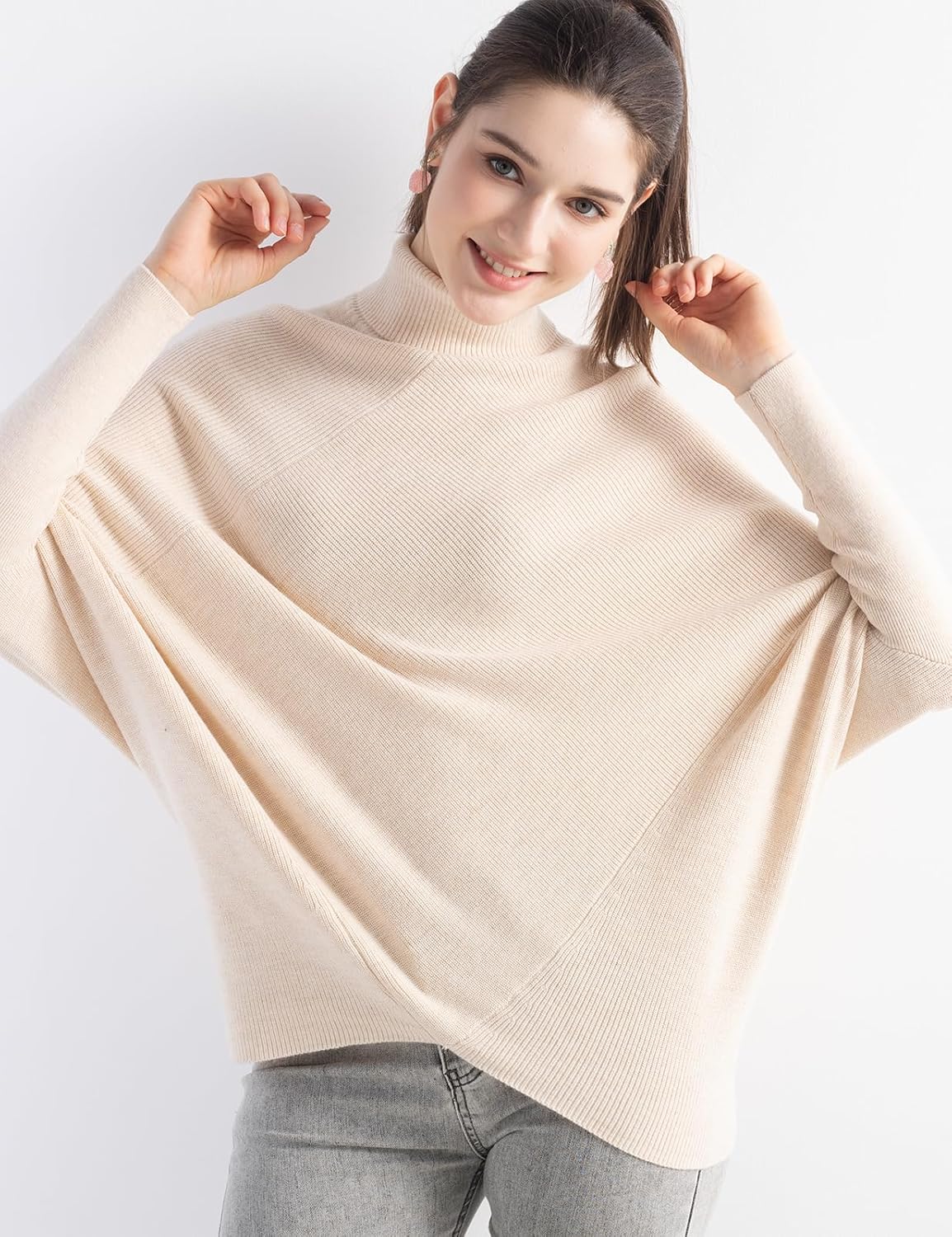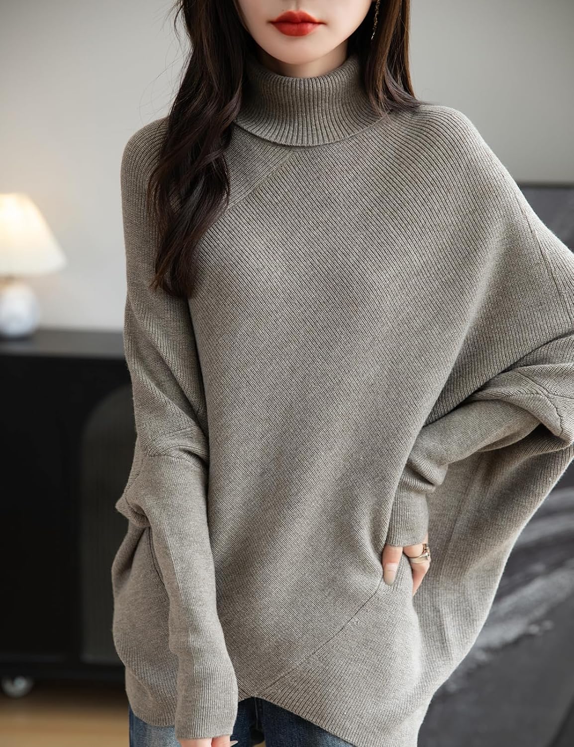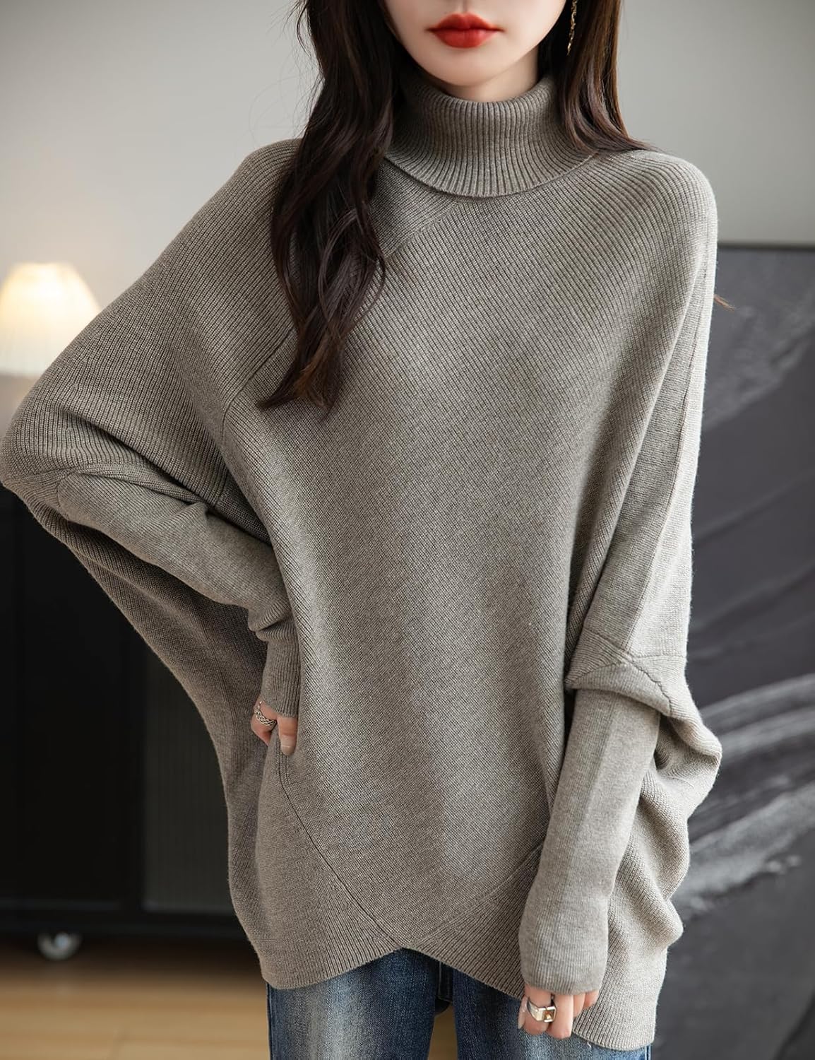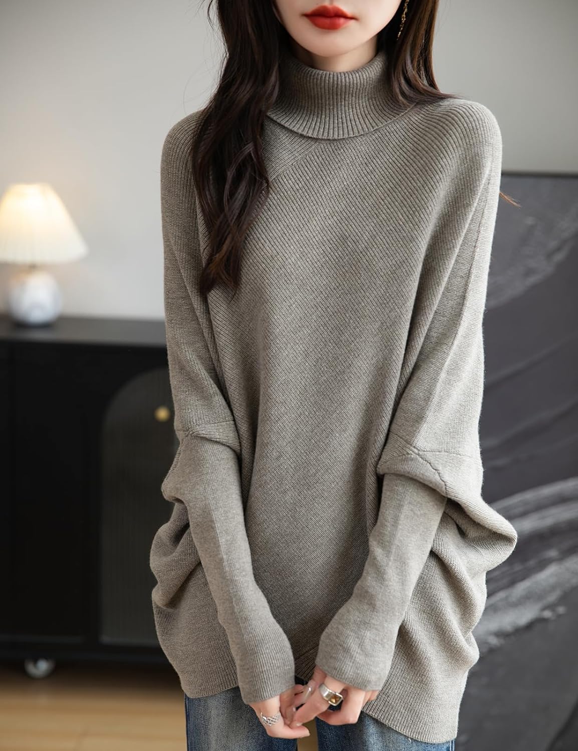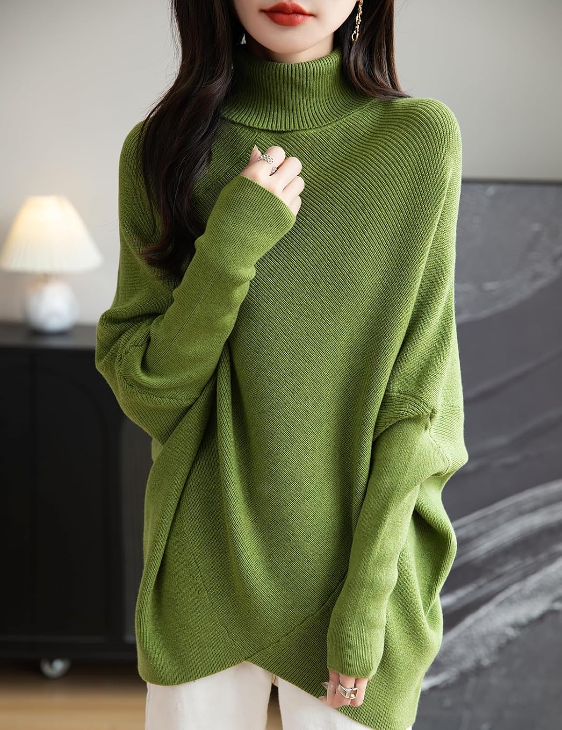 Micchiati di oversize di lana merino da donna 2025 Autunno inverno alla moda alla moda Turtleneck manica a pipistrella maglione