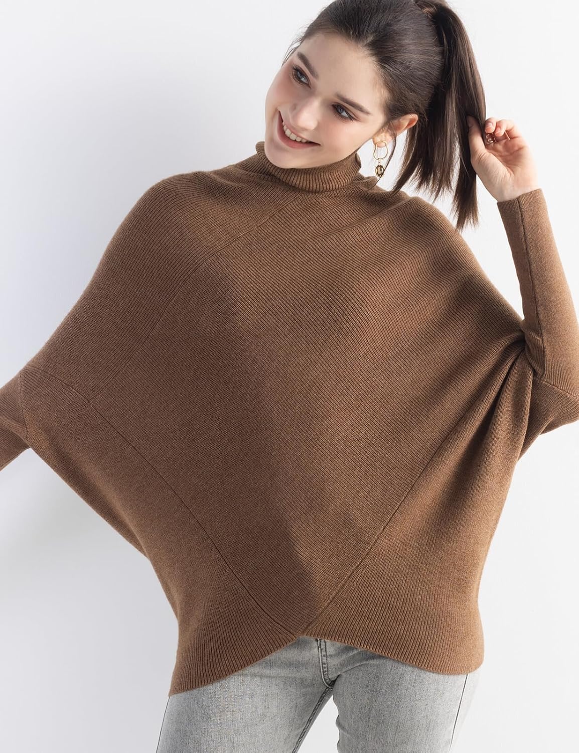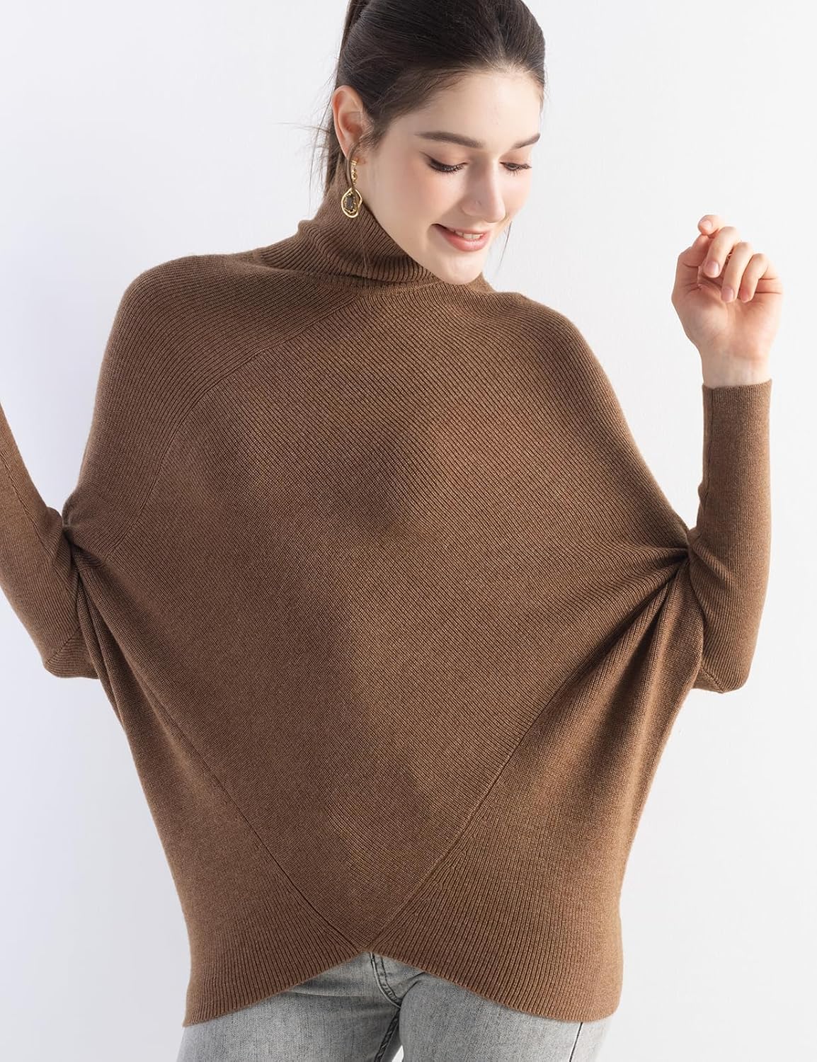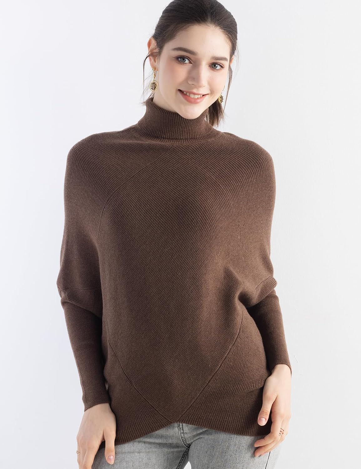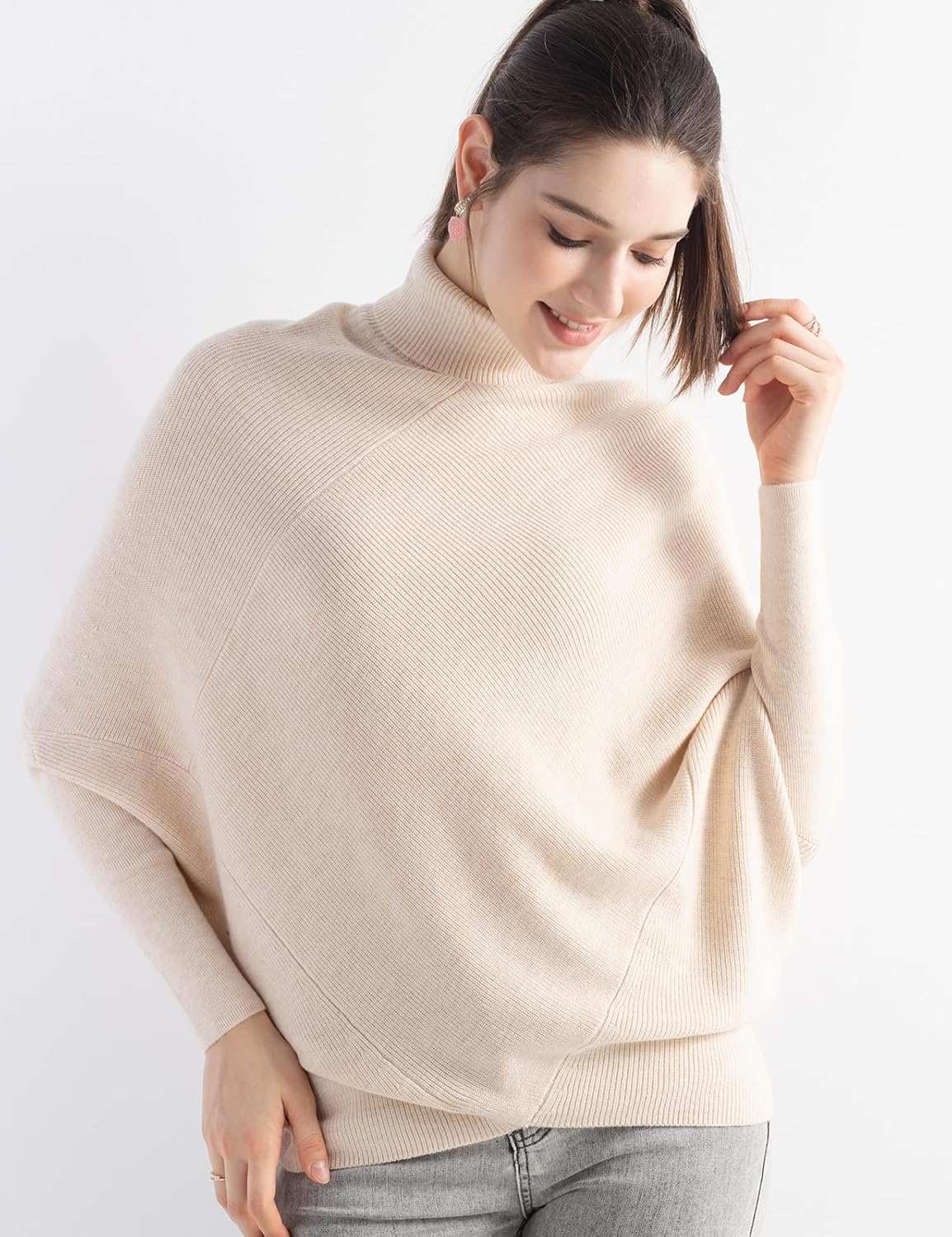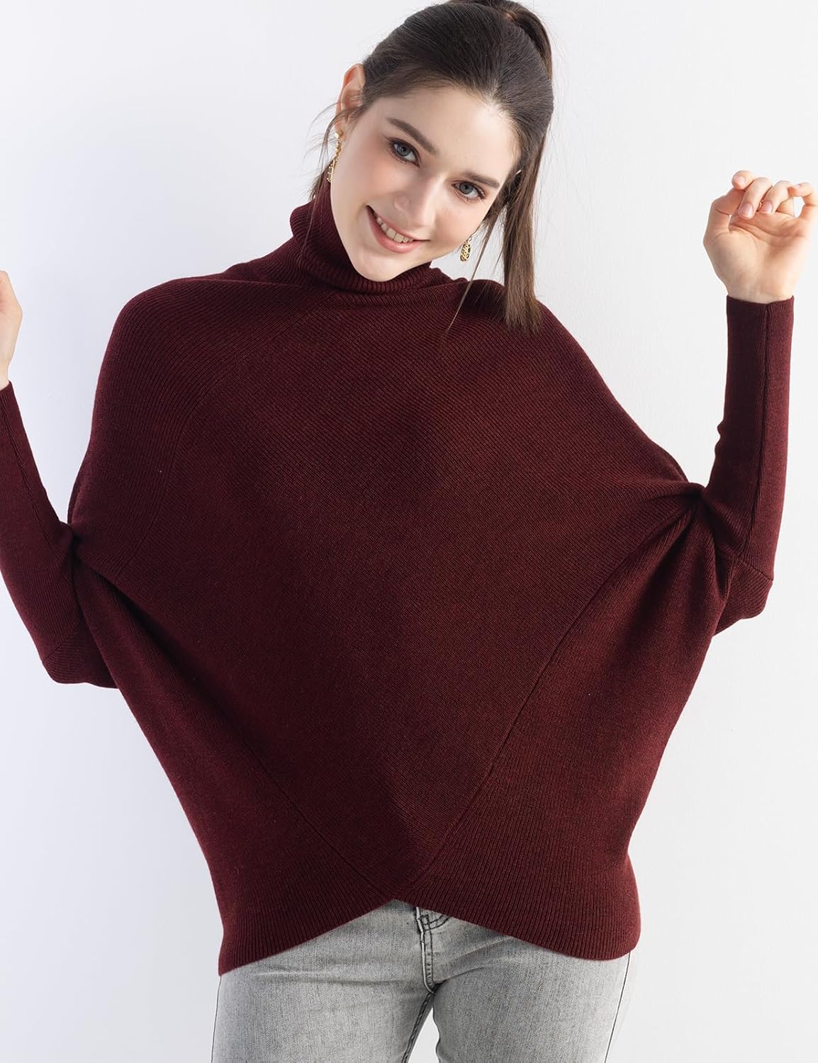 Micchiati di oversize di lana merino da donna 2025 Autunno inverno alla moda alla moda Turtleneck manica a pipistrella maglione