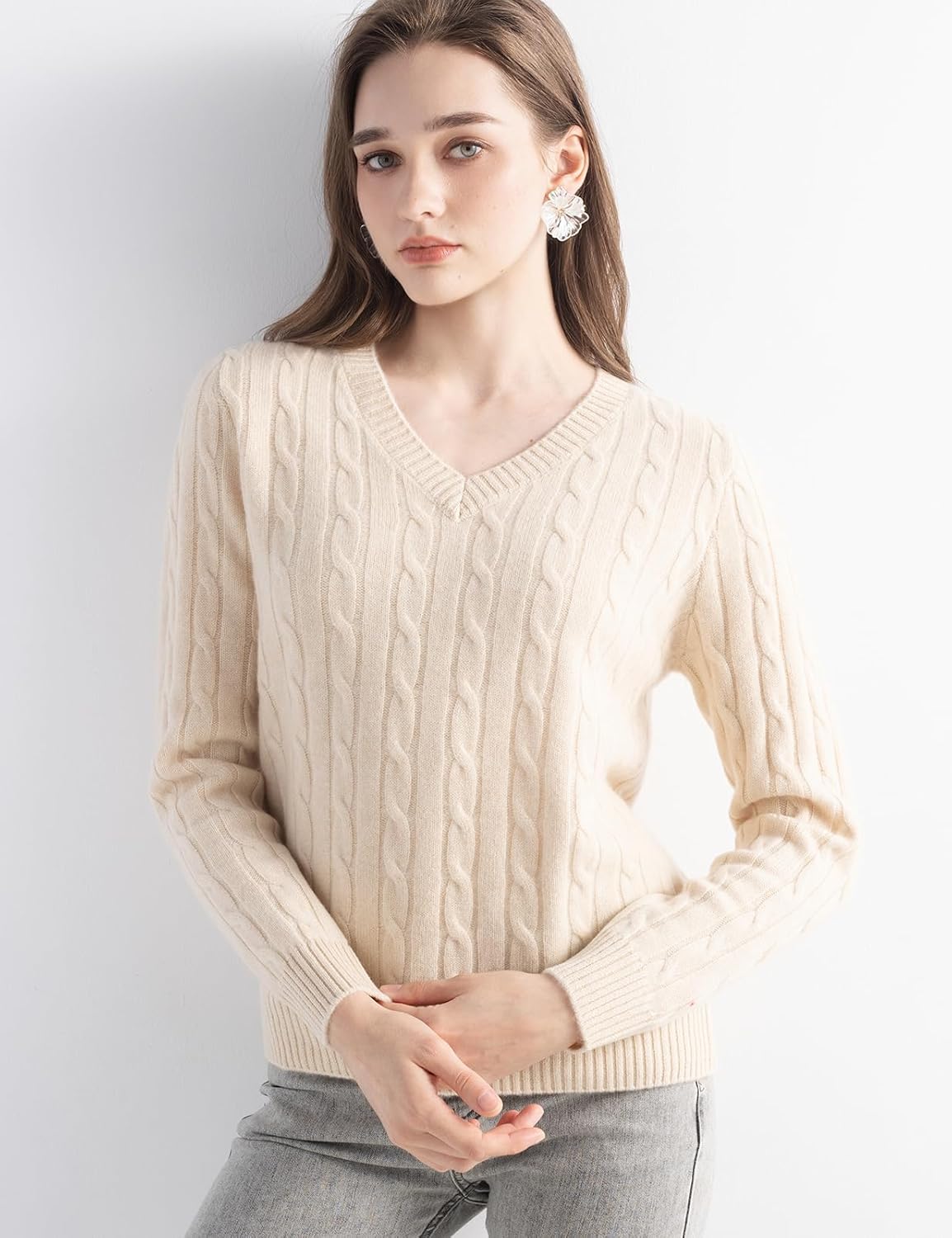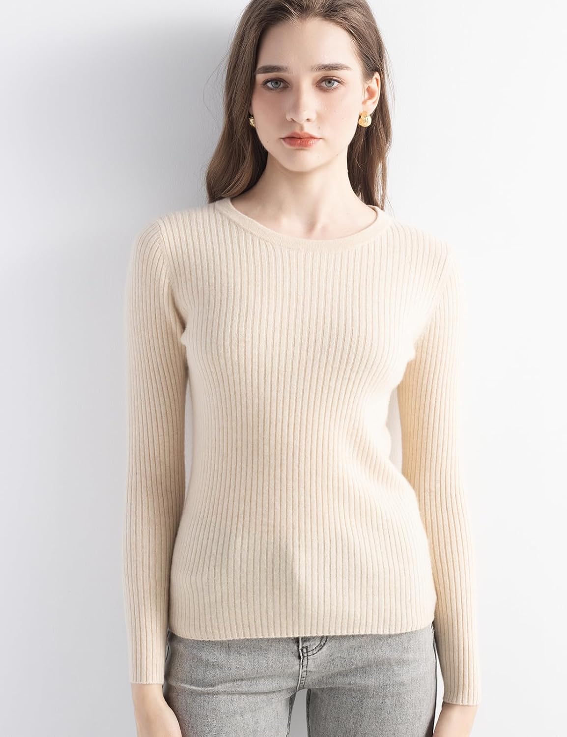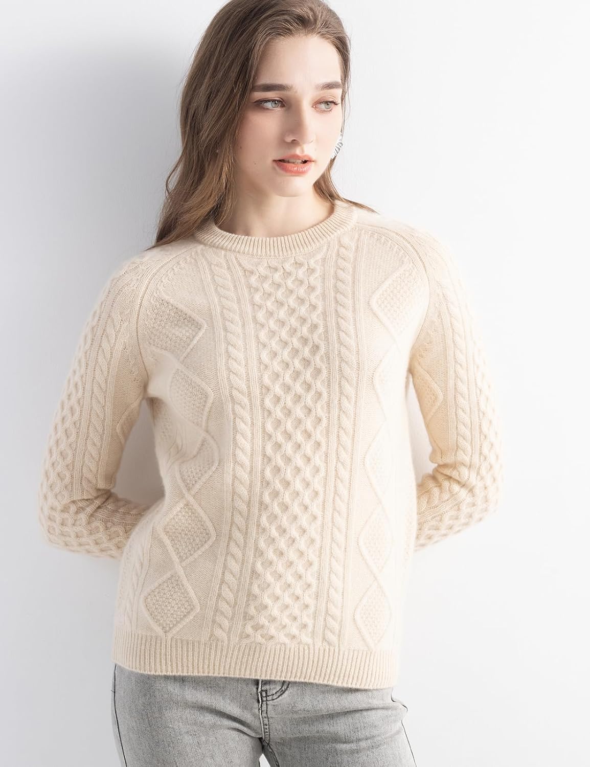 モンゴルのカシミアスリムケーブルクルーネックセーター