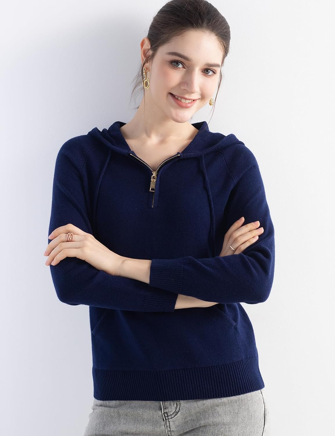 女性のメリノウールブレンドパーカー2025秋の冬のスウェットシャツクルーネック長袖ニットプルオーバーとジッパー