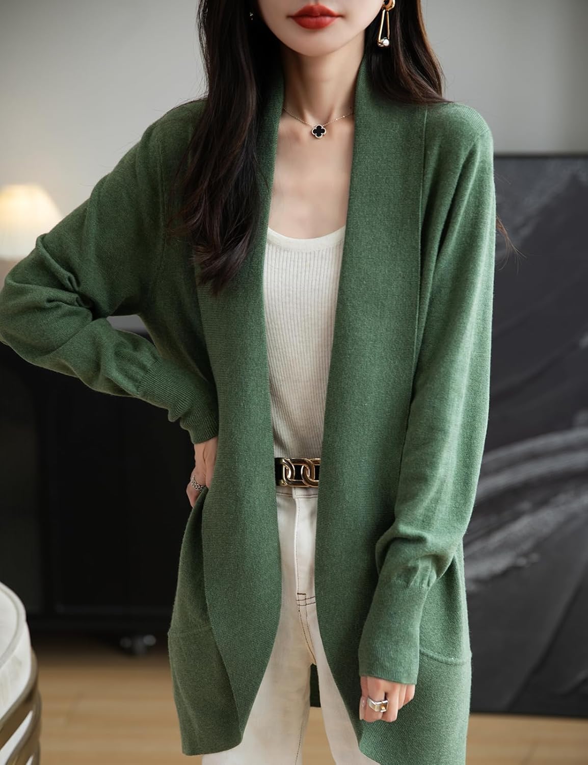 女子メリノウールブレンドカーディガンセーター2025秋冬のカジュアルオープンフロントロングスリーブウォームソフトニットカーディガン