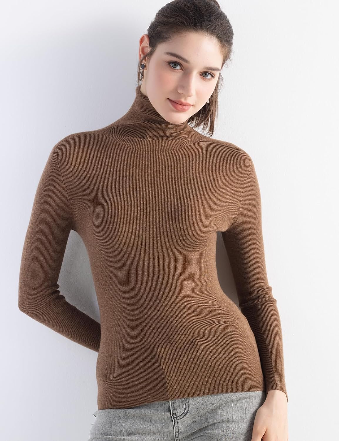 レディースメリノウールブレンドセータータートルネックリブスリムフィット長袖のファーストラインシームレスニットセーターを着用する準備ができています