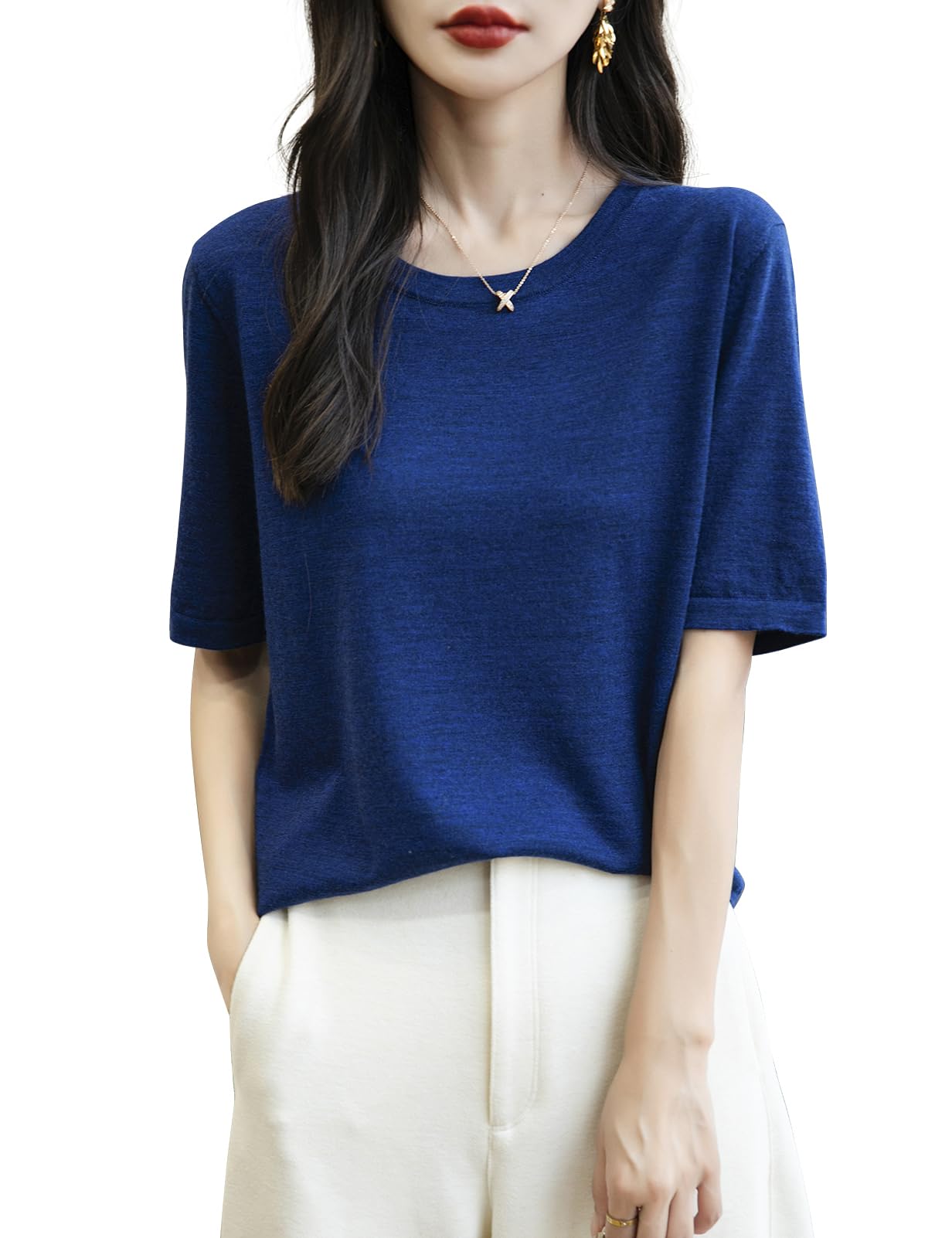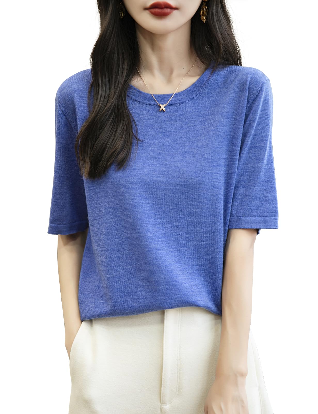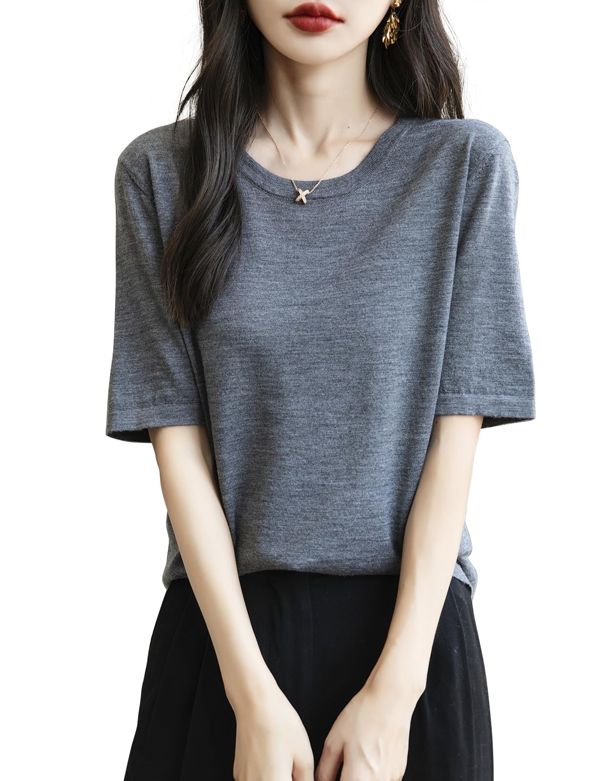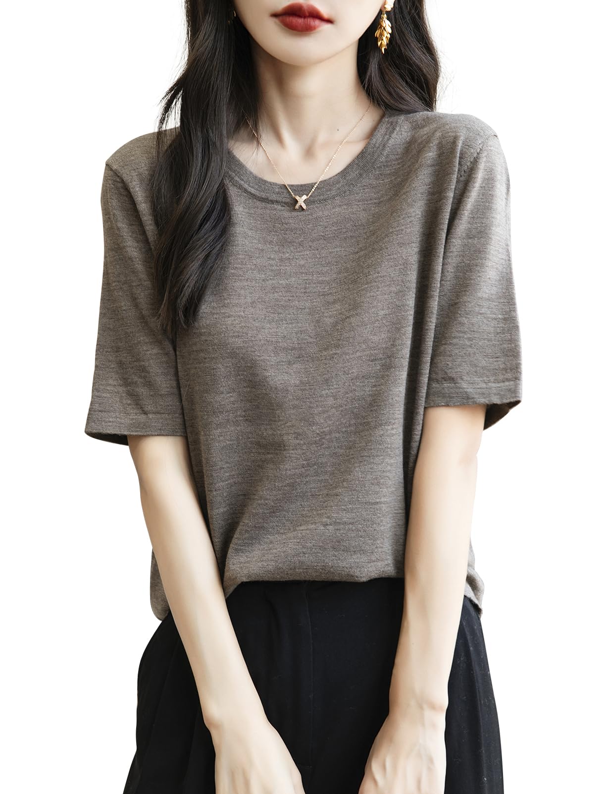 Chanyarn女性の100%メリノウールベースレイヤーシャツトップクルーネック半袖旅行ハイキングTシャツプルオーバーセーター