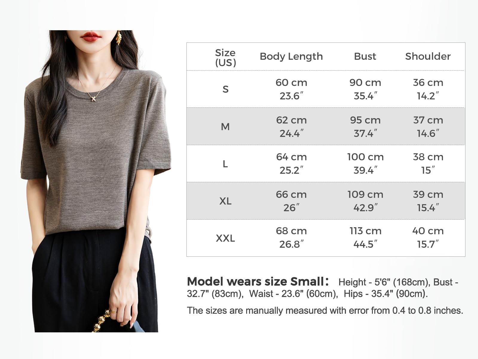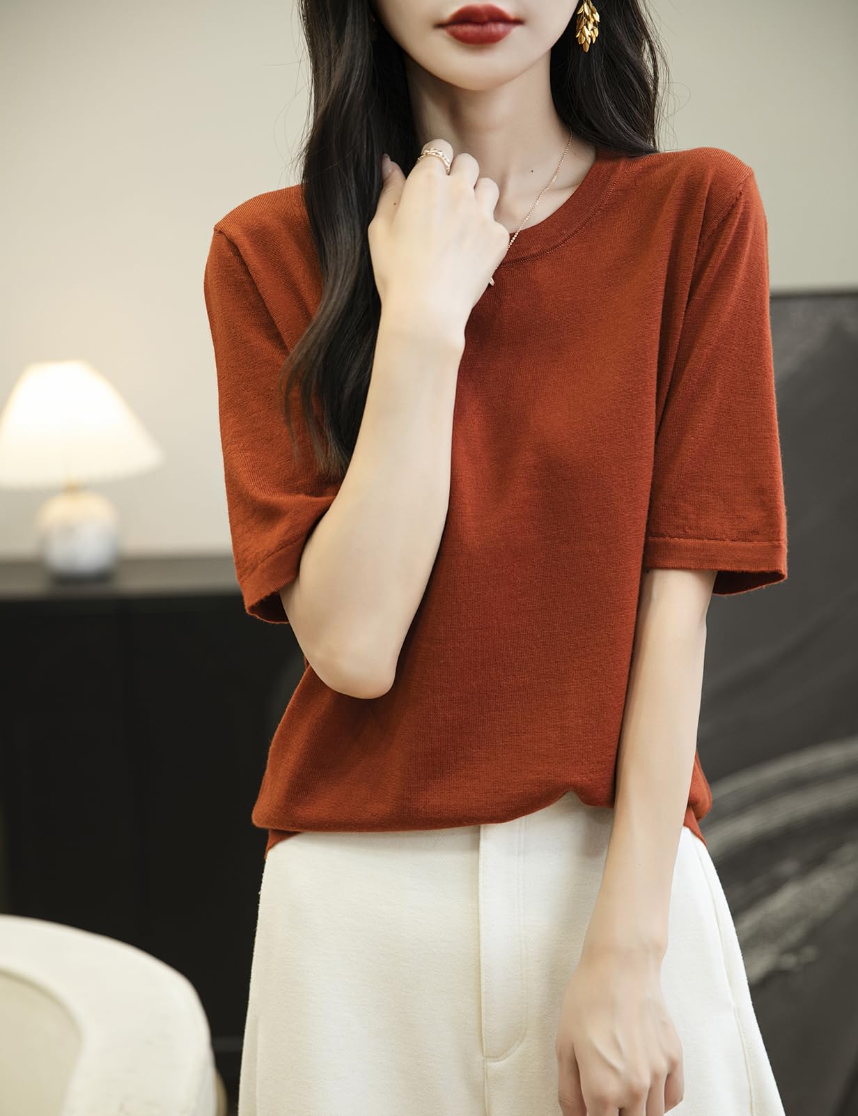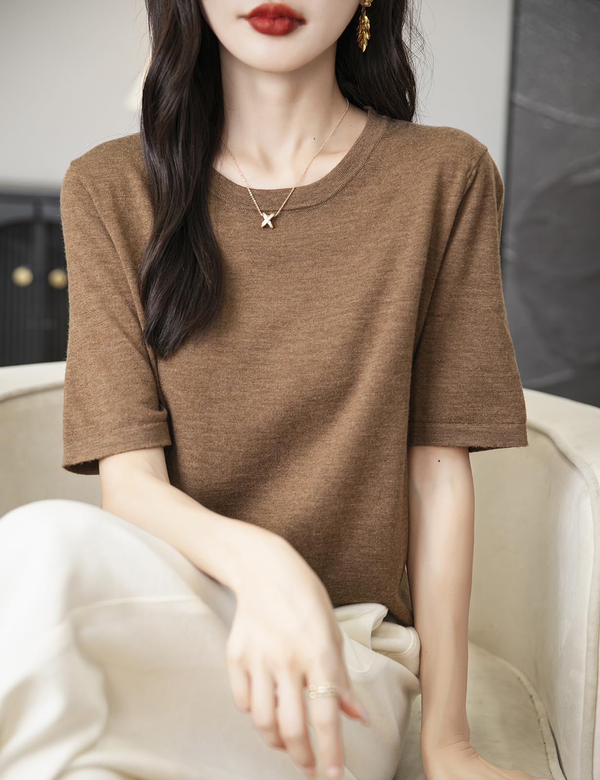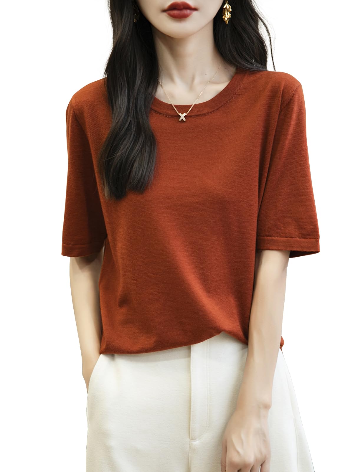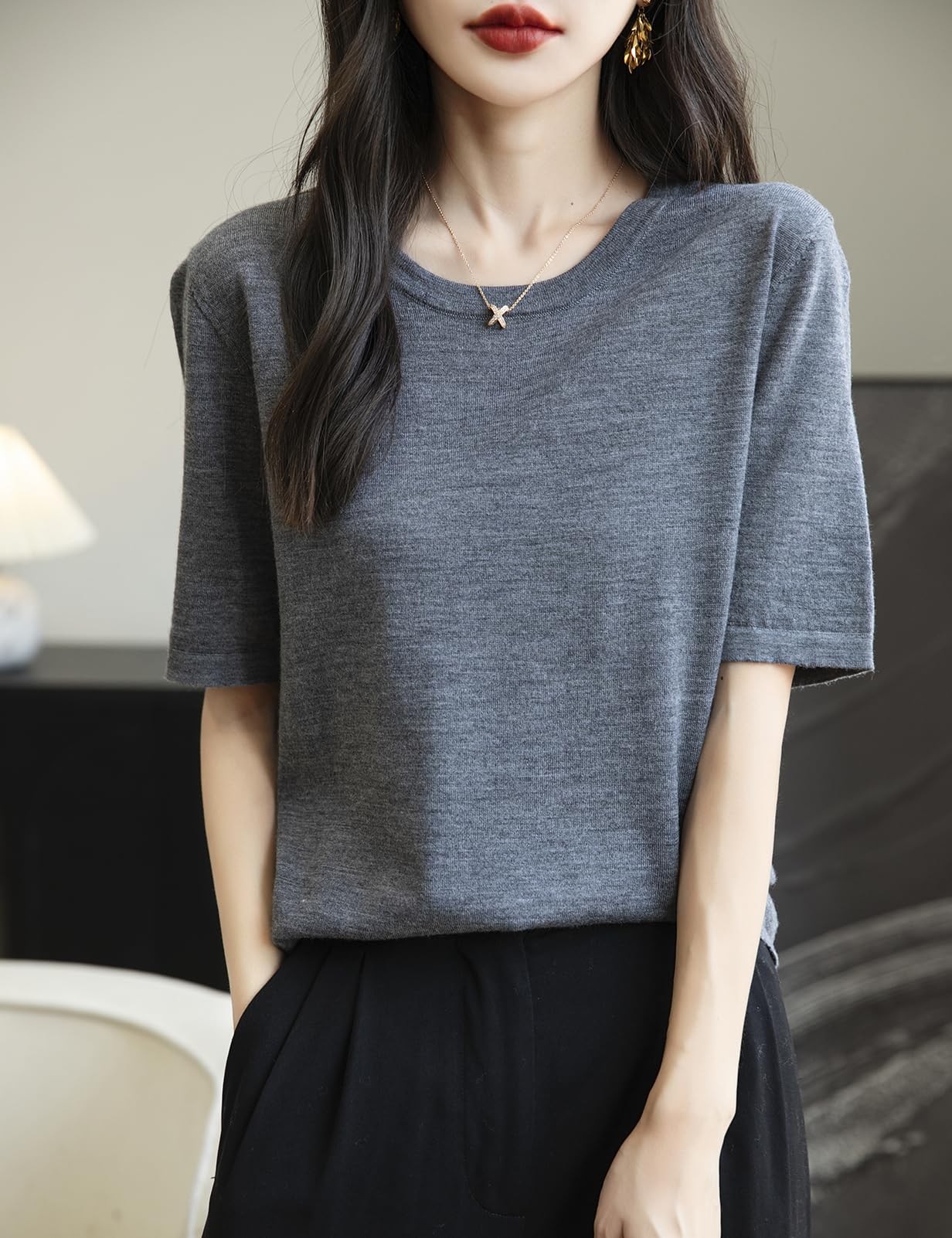 Chanyarn女性の100%メリノウールベースレイヤーシャツトップクルーネック半袖旅行ハイキングTシャツプルオーバーセーター
