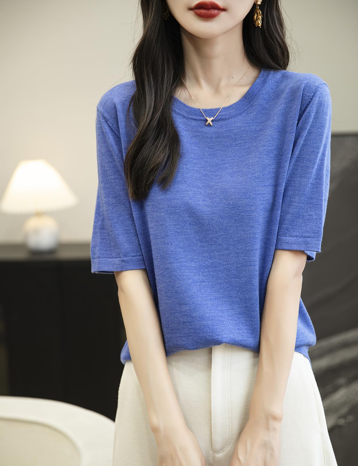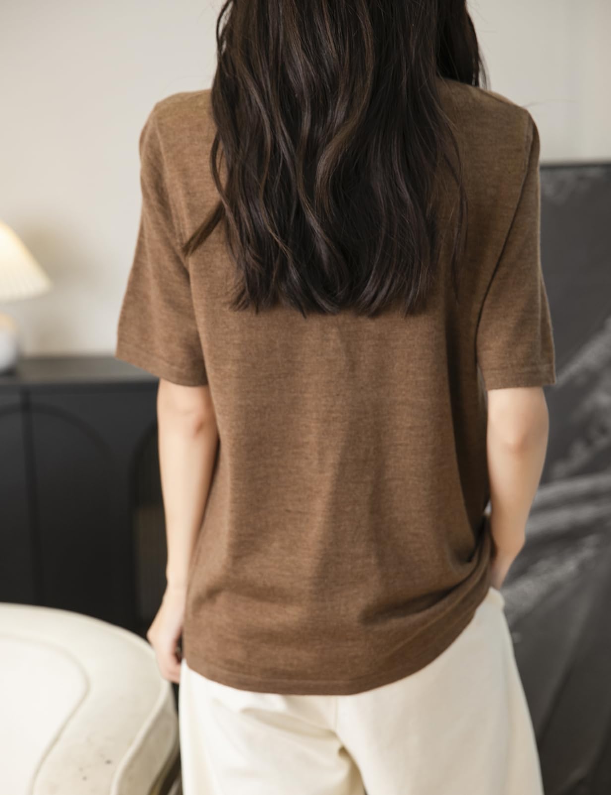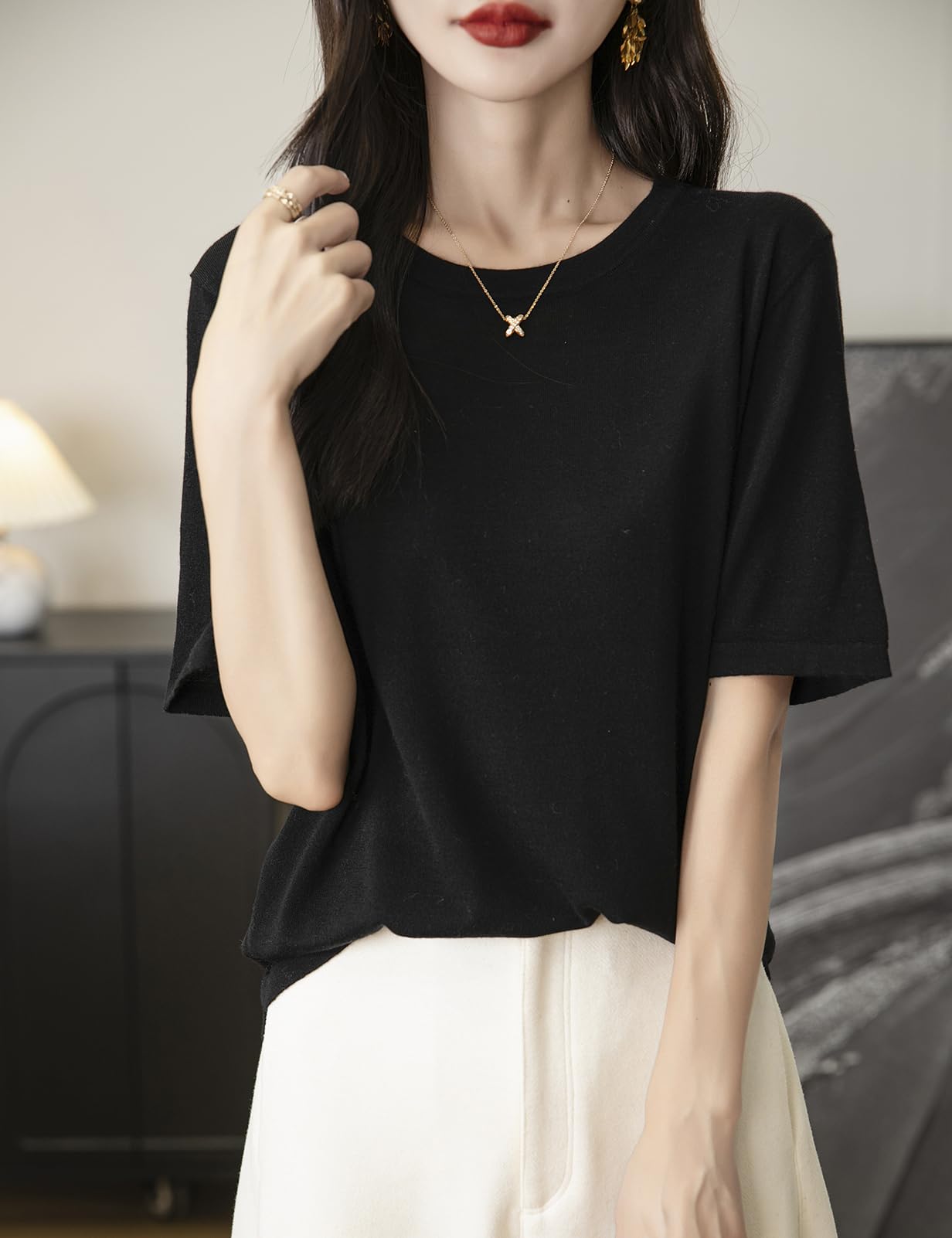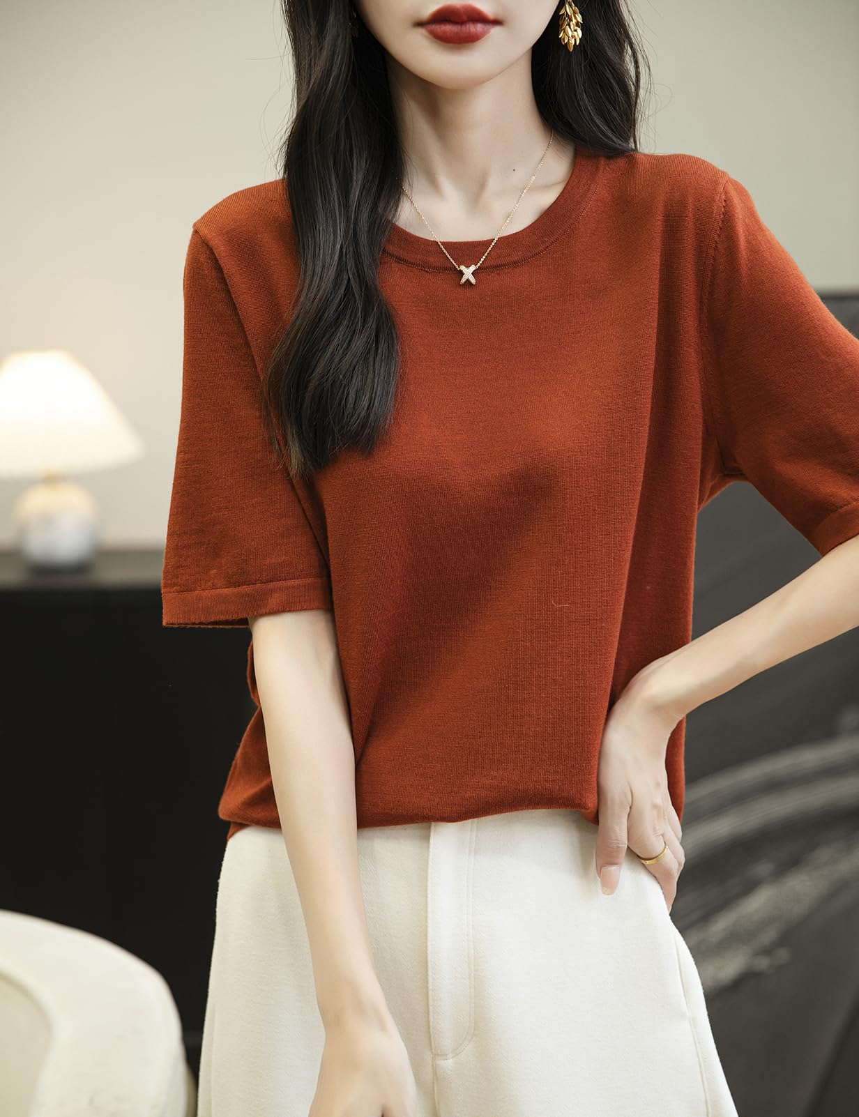 Chanyarn女性の100%メリノウールベースレイヤーシャツトップクルーネック半袖旅行ハイキングTシャツプルオーバーセーター