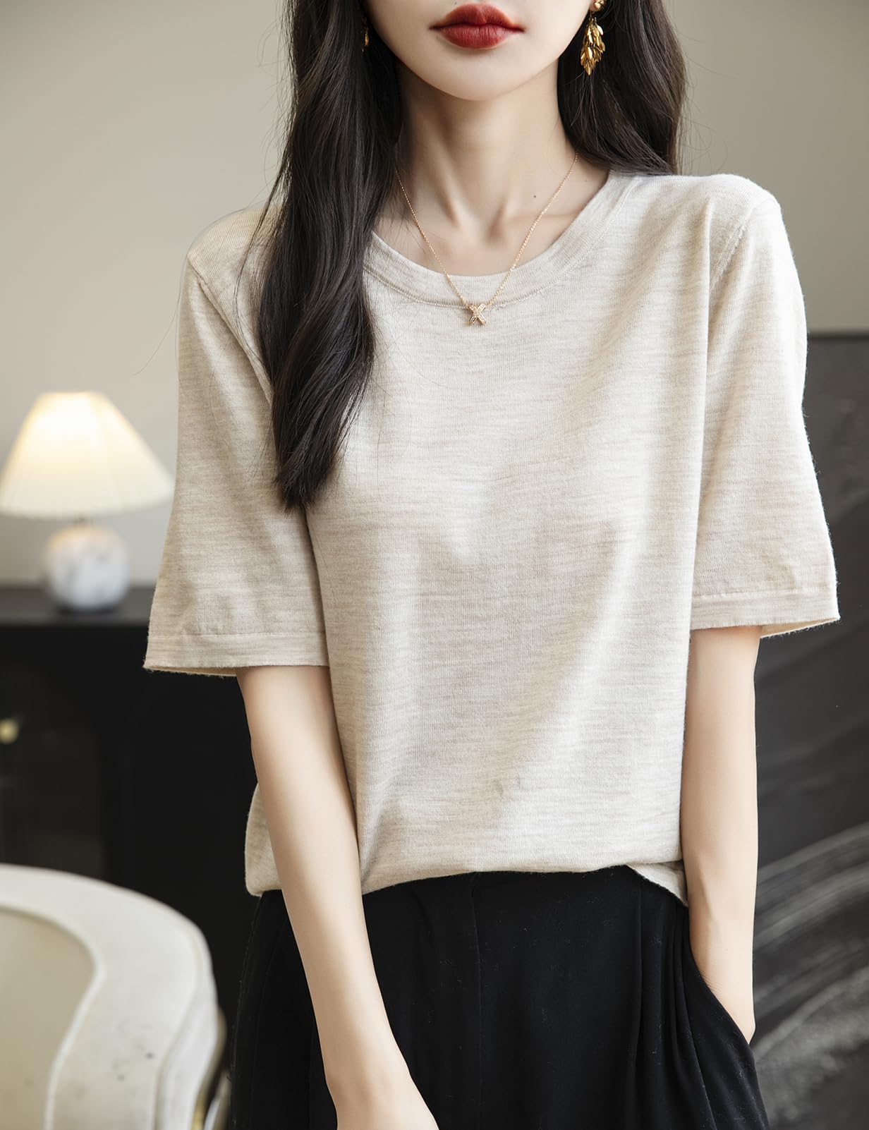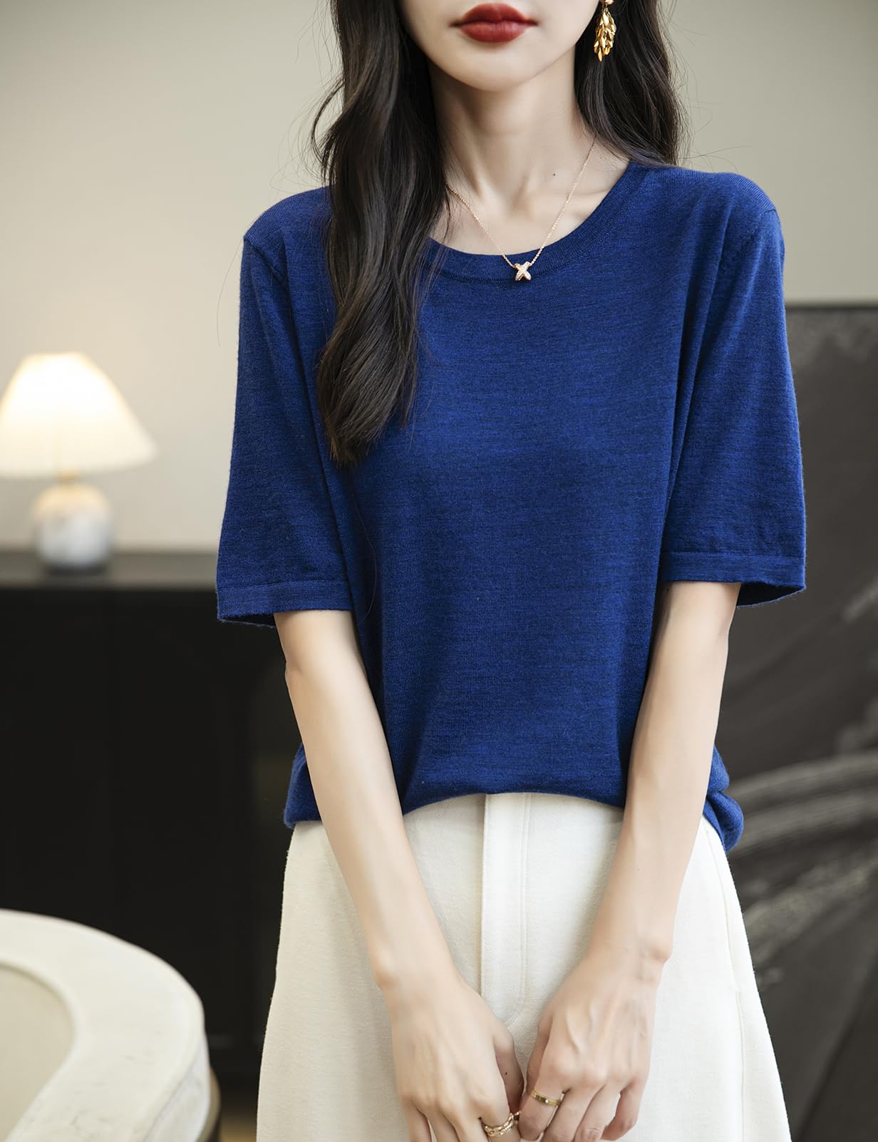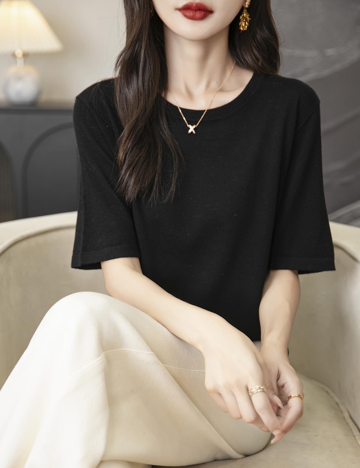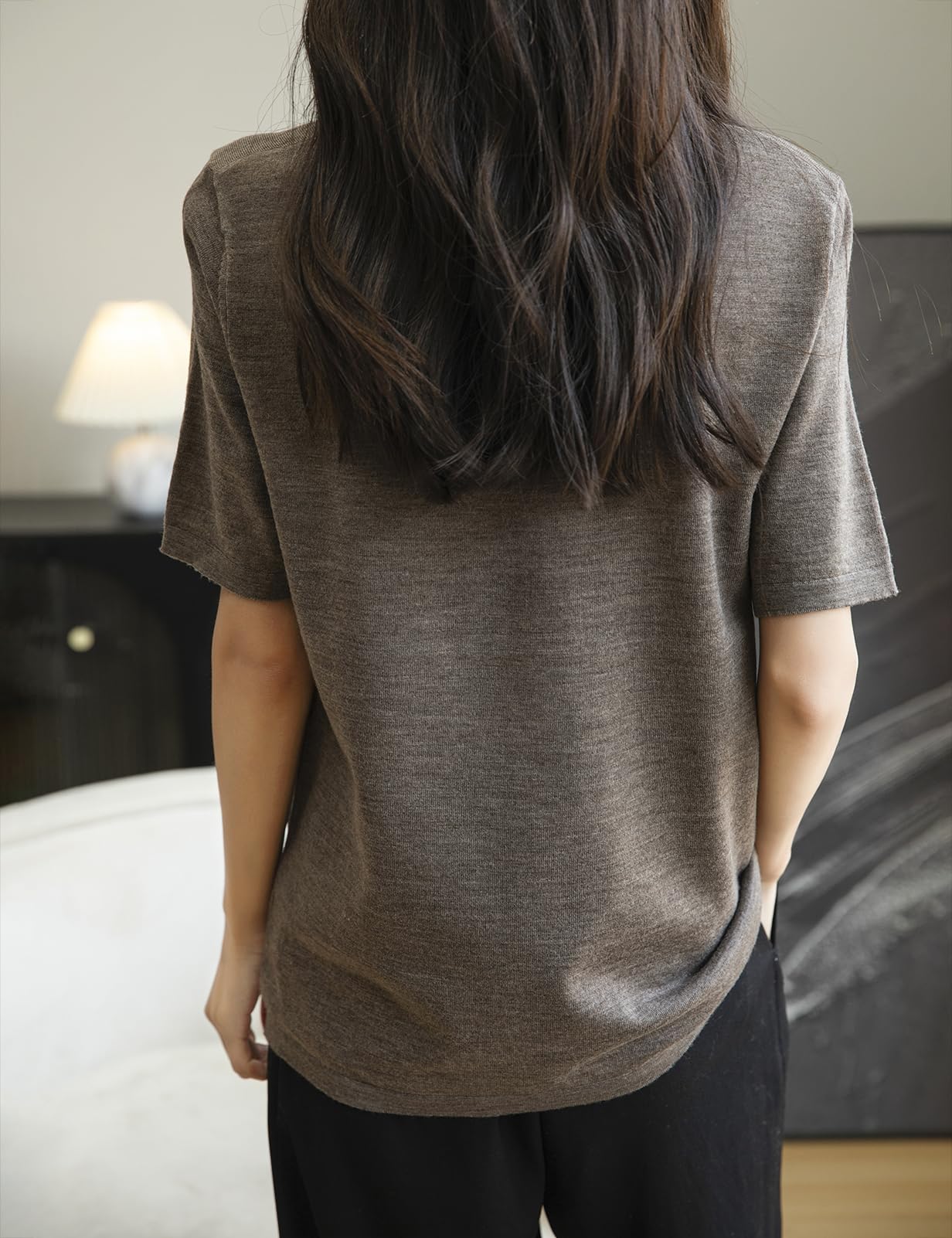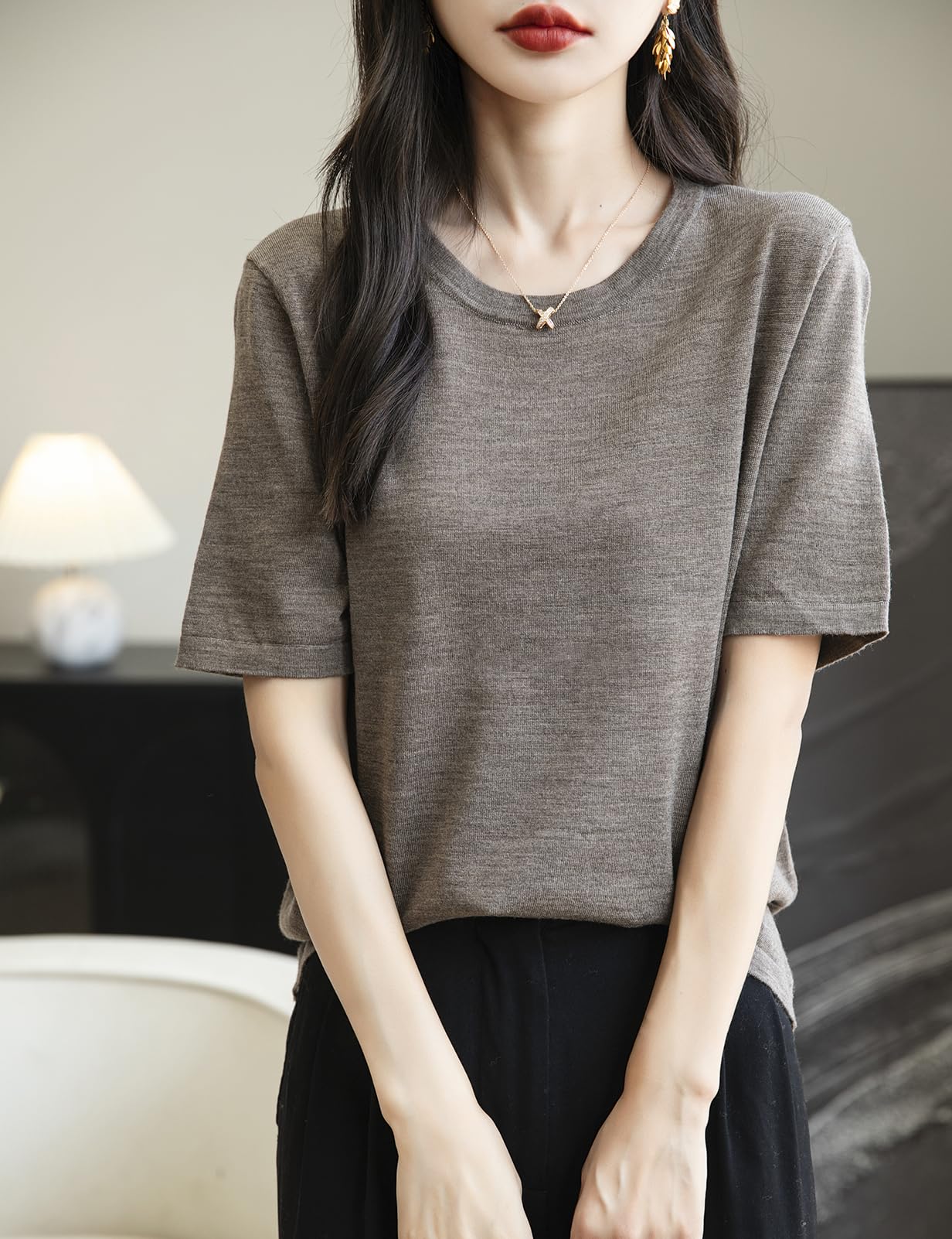Chanyarn女性の100%メリノウールベースレイヤーシャツトップクルーネック半袖旅行ハイキングTシャツプルオーバーセーター