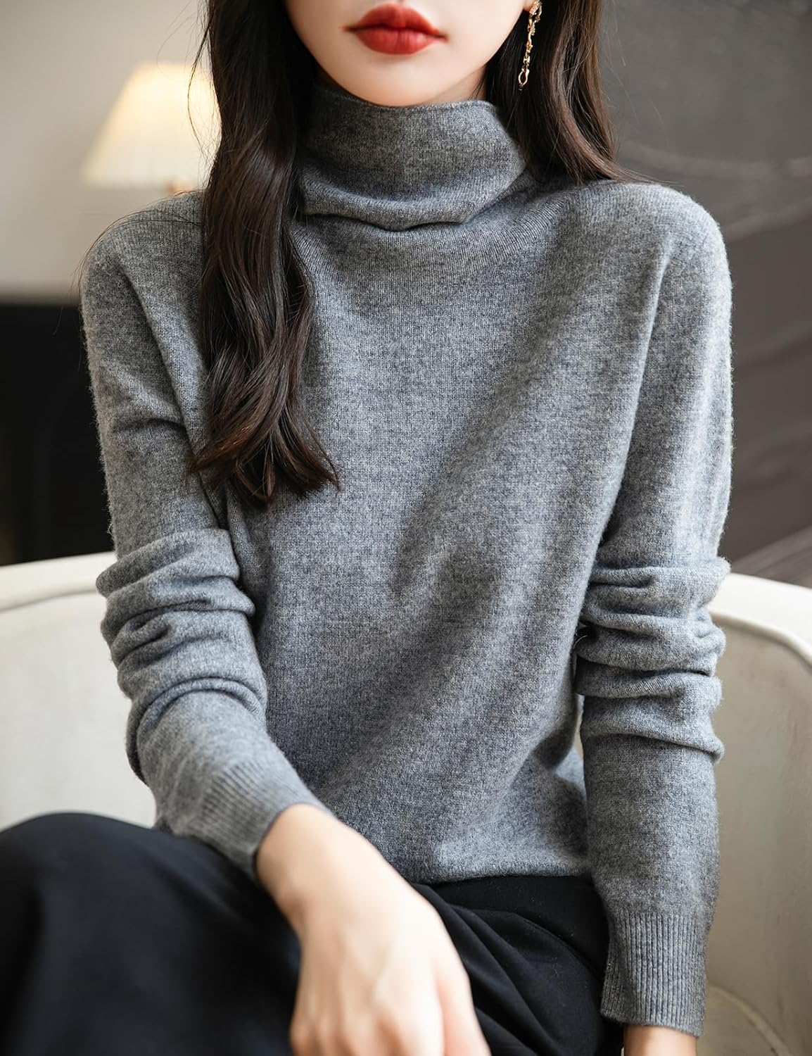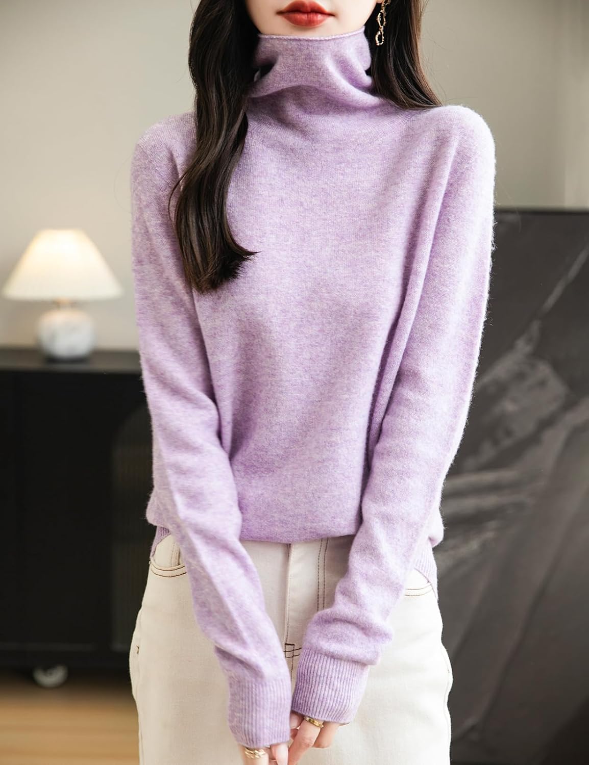 Chanyarn Women's100%メリノウールシームレスセータータートルネックファーストライン長いスリーブニットプルオーバートップを着用する準備ができています