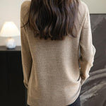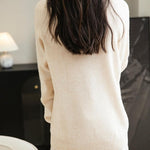 - 原材料: 26Nm/2 の純粋なメリノウールの細糸で作られたこの 100% メリノウール セーターは、ウールの細さが 17.5~17.9 ミクロンで、美しく柔らかくふわふわした質感で、最高級の長繊維繊維の 2 本撚りの高密度編み糸が最高の抗ピリング性能を実現します。