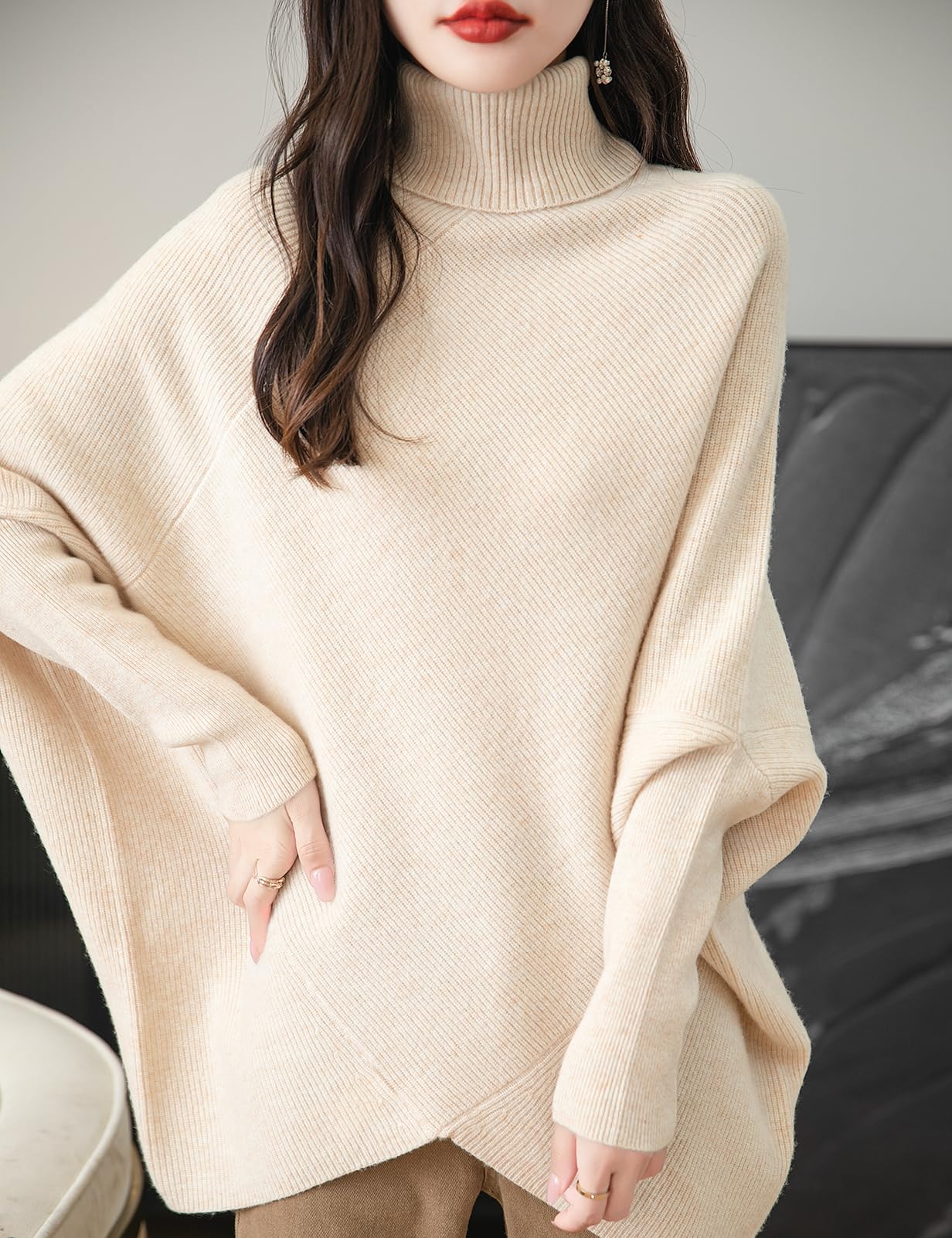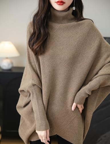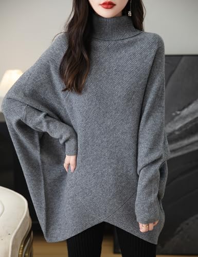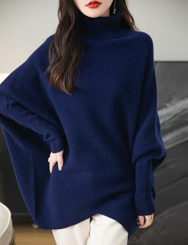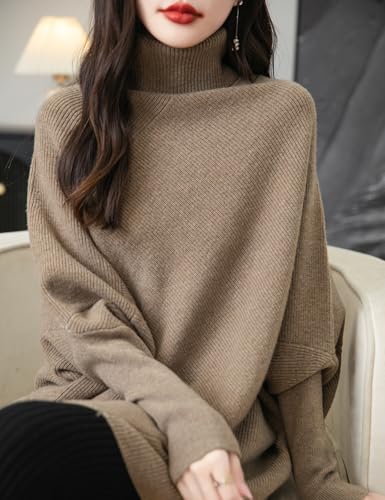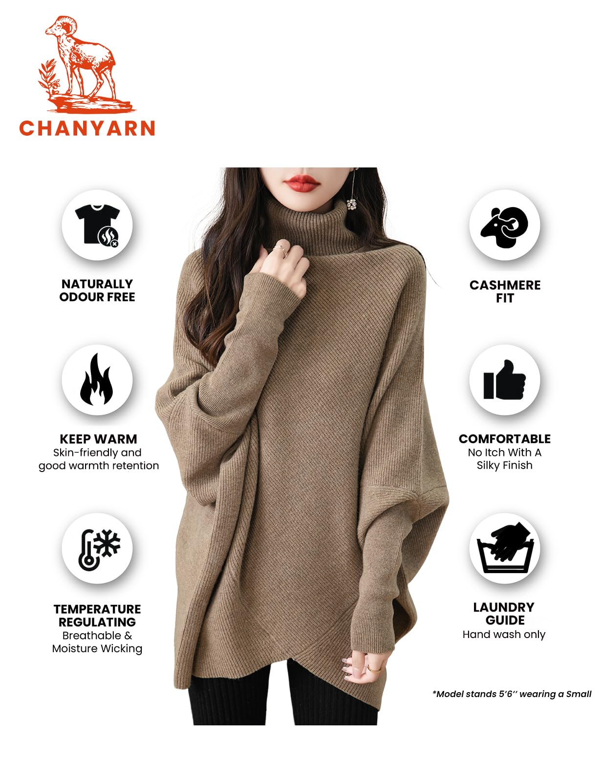 Chanyarn Women's Turtleneck100%Merino Wool特大セーター2025秋冬のバットウィング長袖ニットセーター