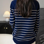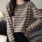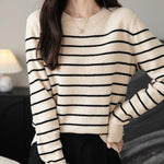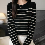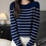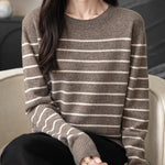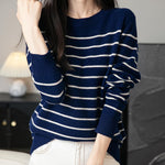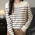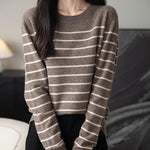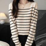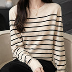 女性用100%メリノウールセーター2025秋の冬の首のストライプ長袖ウォームソフトニットセーター