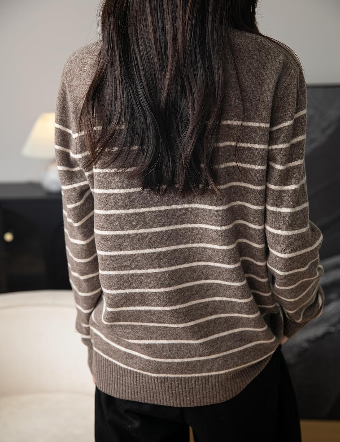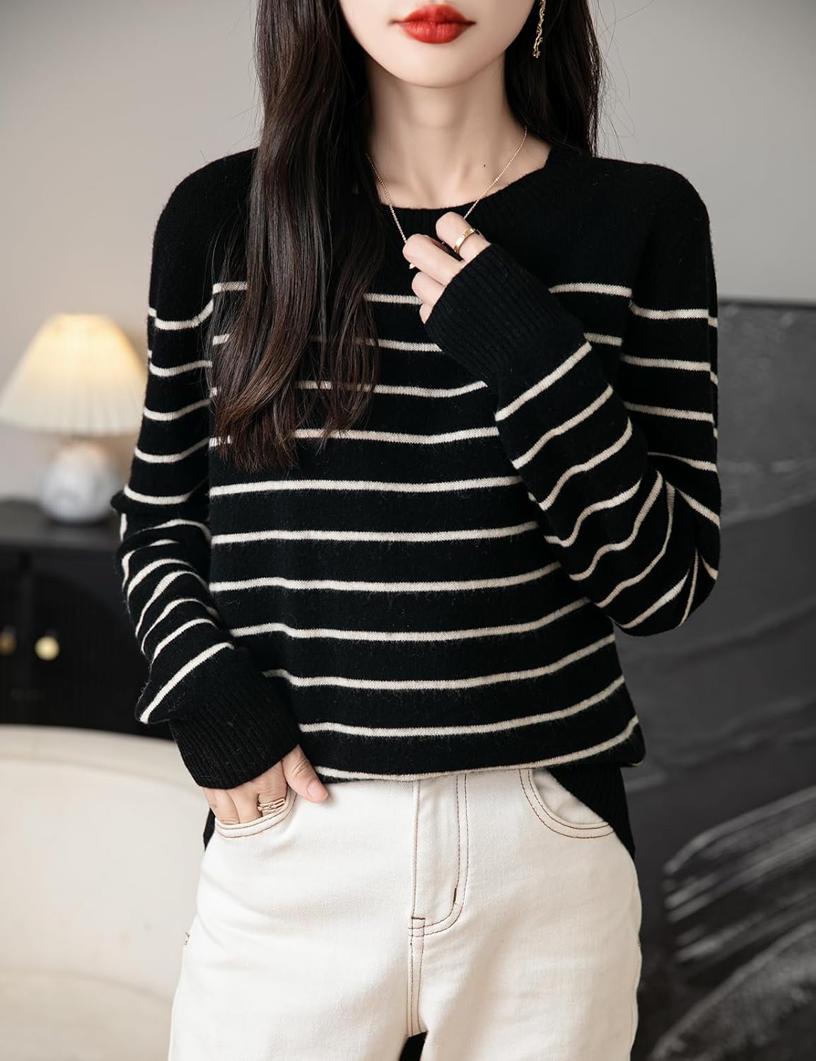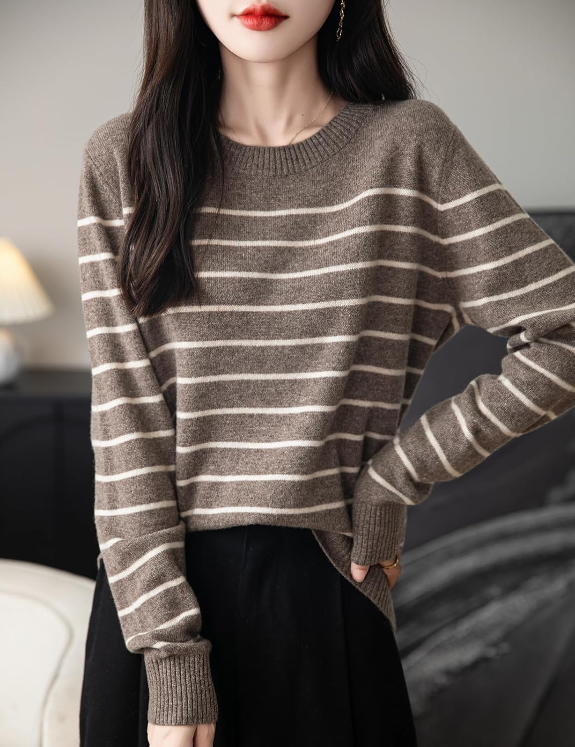 - 特徴:上質な12ゲージ生地で軽量。ノーマルフィット、無地、クルーネック、長袖、ストライプ柄、リブ編みの袖口。高い伸縮性でカジュアルなスタイル。軽量で暖かく、柔らかく、着心地抜群です。このメリノウールセーターは、レギンス、ジーンズ、ニーハイブーツ、スニーカーと合わせれば、カジュアルでファッショナブルなスタイルを演出できます。