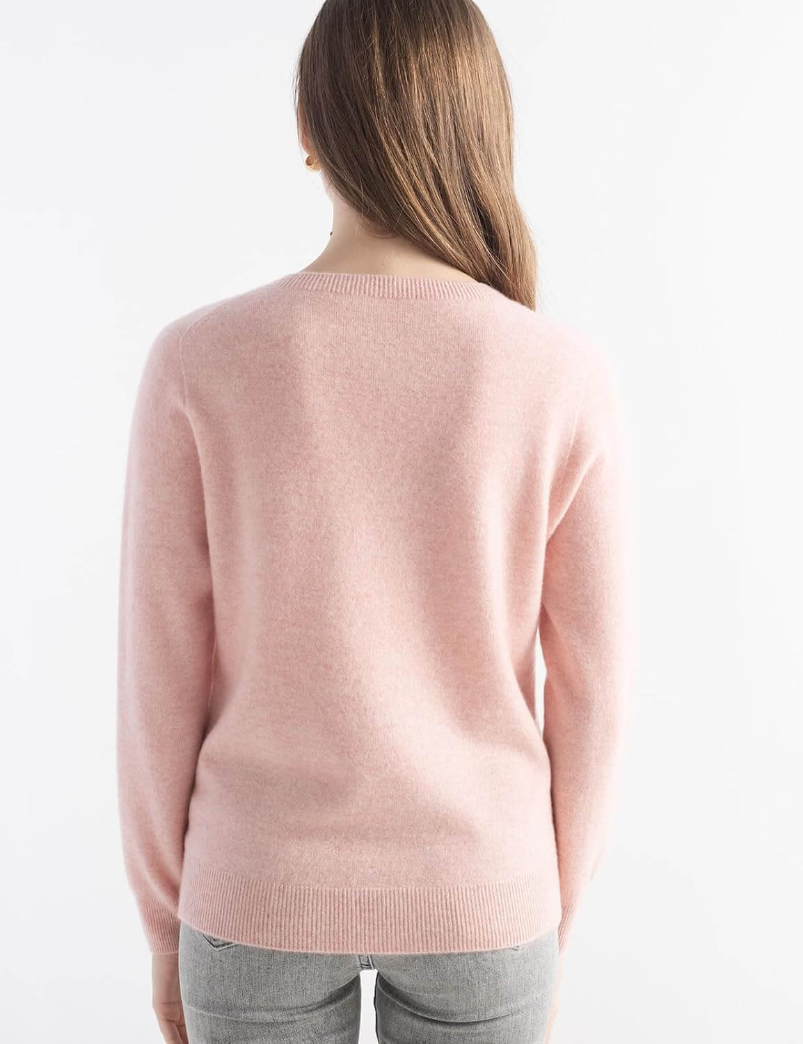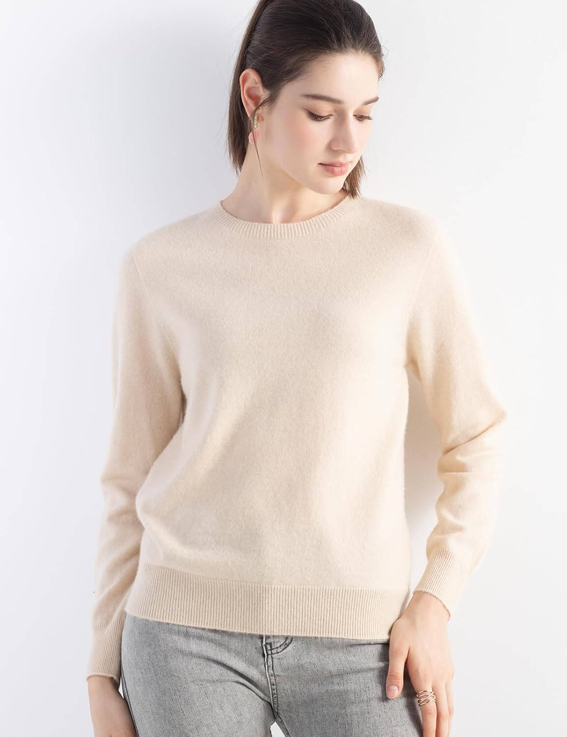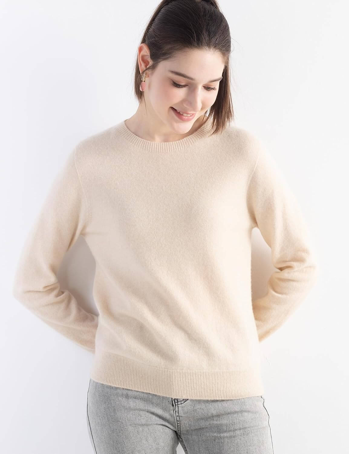 - 注:最初は肌触りがあまり柔らかくないかもしれませんが、洗うたびにカシミヤは徐々に柔らかくなり、本来の風合いが出てきます。一般的に、カシミヤセーターの編み構造は比較的緩めです。このため、非常に柔らかく軽いという利点がありますが、毛玉ができやすいという欠点があります。この問題を回避するため、私たちは密に編んだニット構造を採用しています。これによりコストは高くなりますが、毛玉ができにくく、長持ちします。