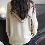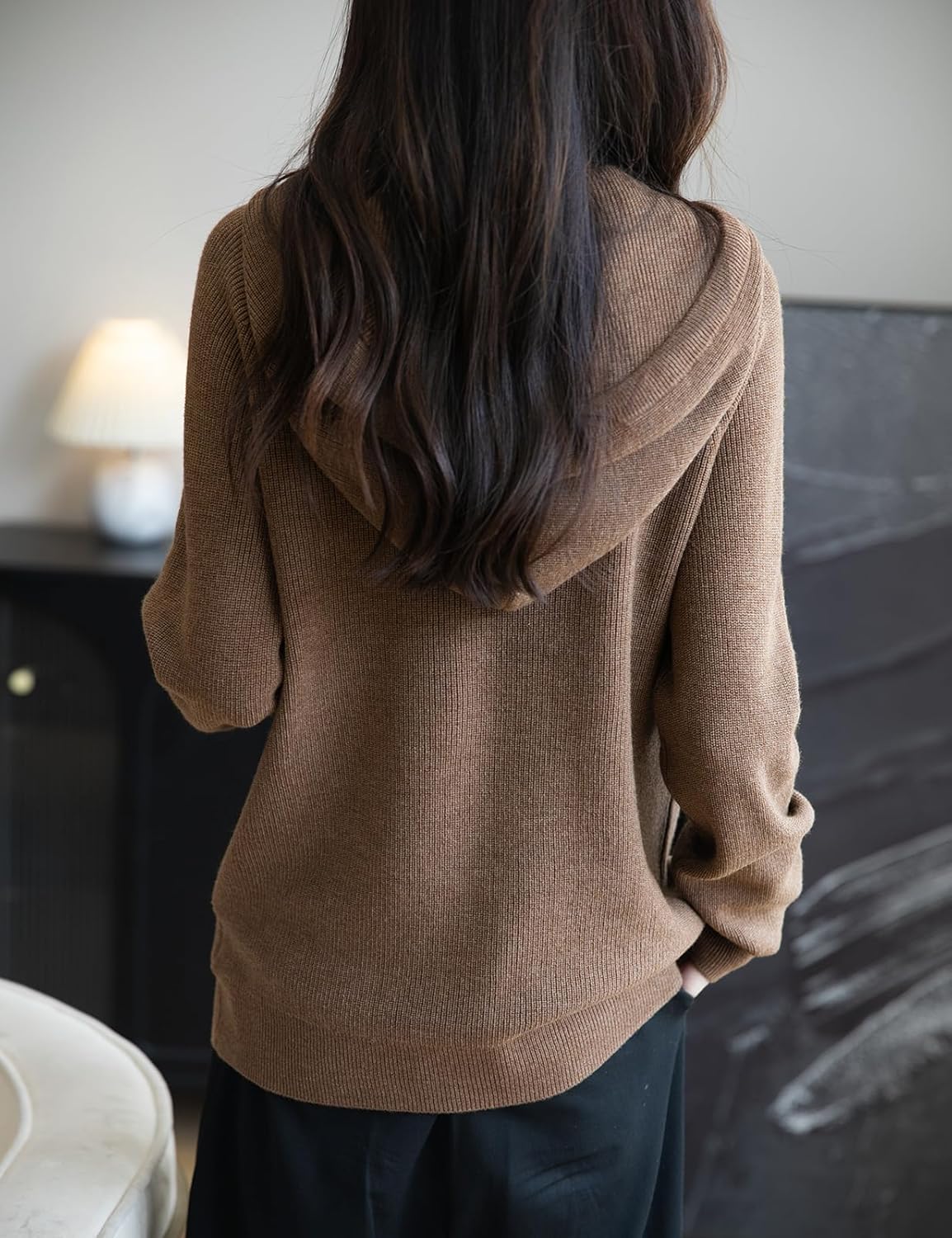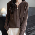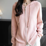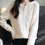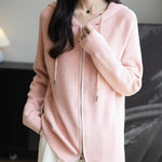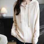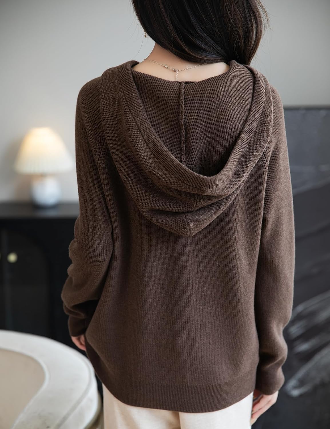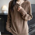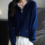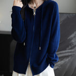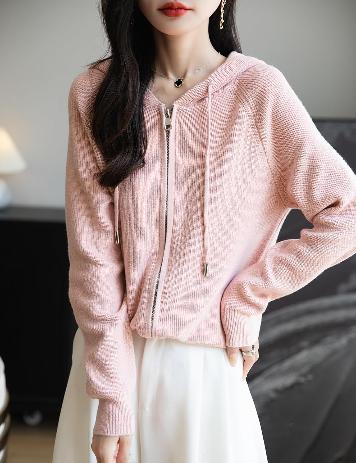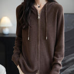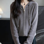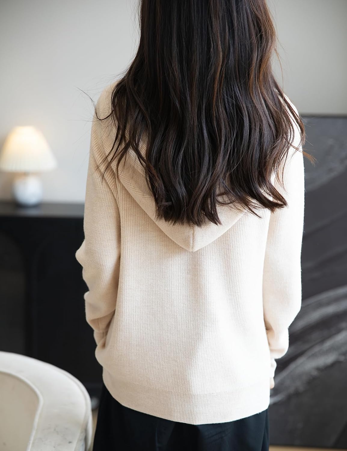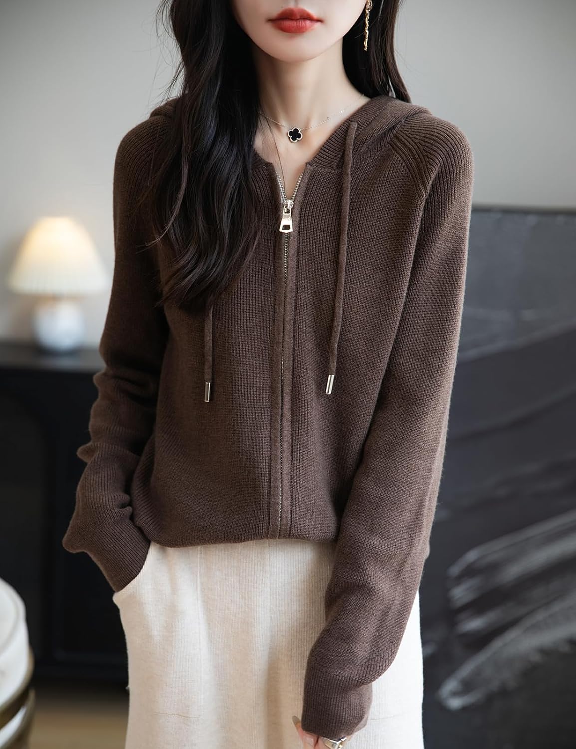 レディースメリノウールブレンドカーディガン2025秋ウィンターカジュアルジッパースウェットシャツ長袖リブ付きニットフード付きカーディガン