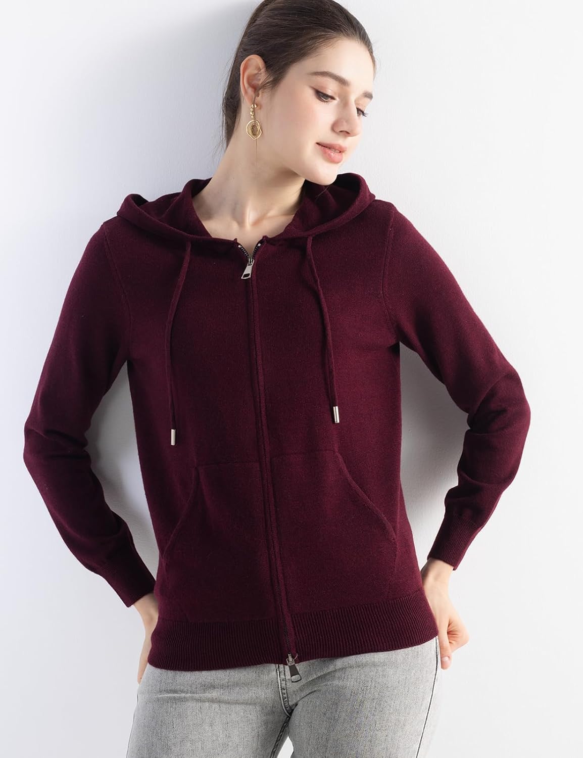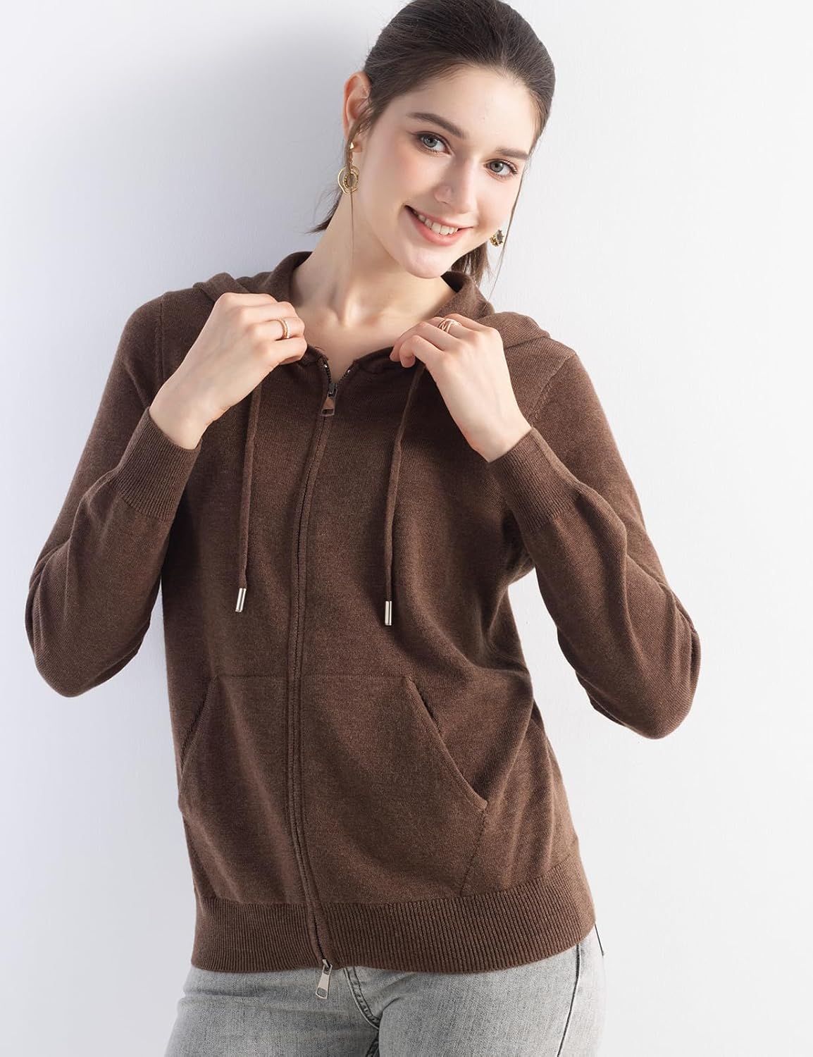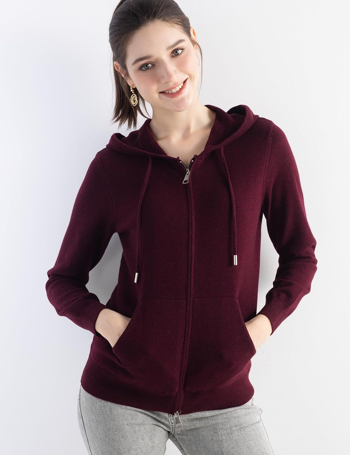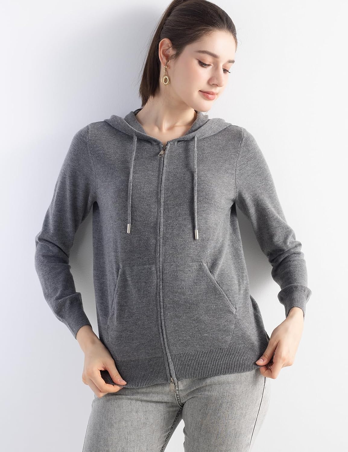 レディースメリノウールブレンドカーディガン2025秋冬のジッパースウェットシャツクルー首長袖ニットフード付きカーディガン