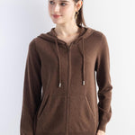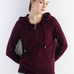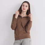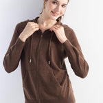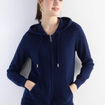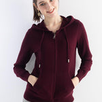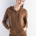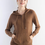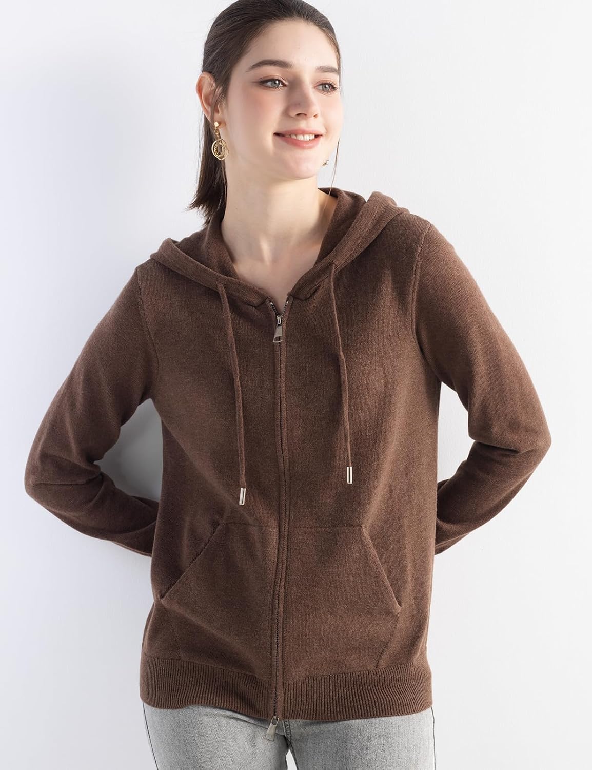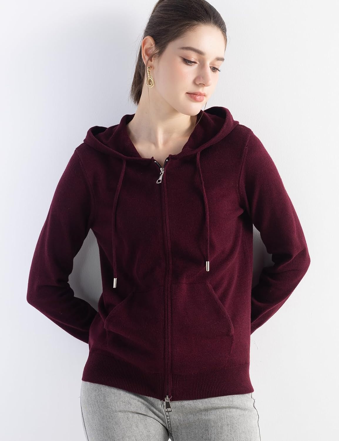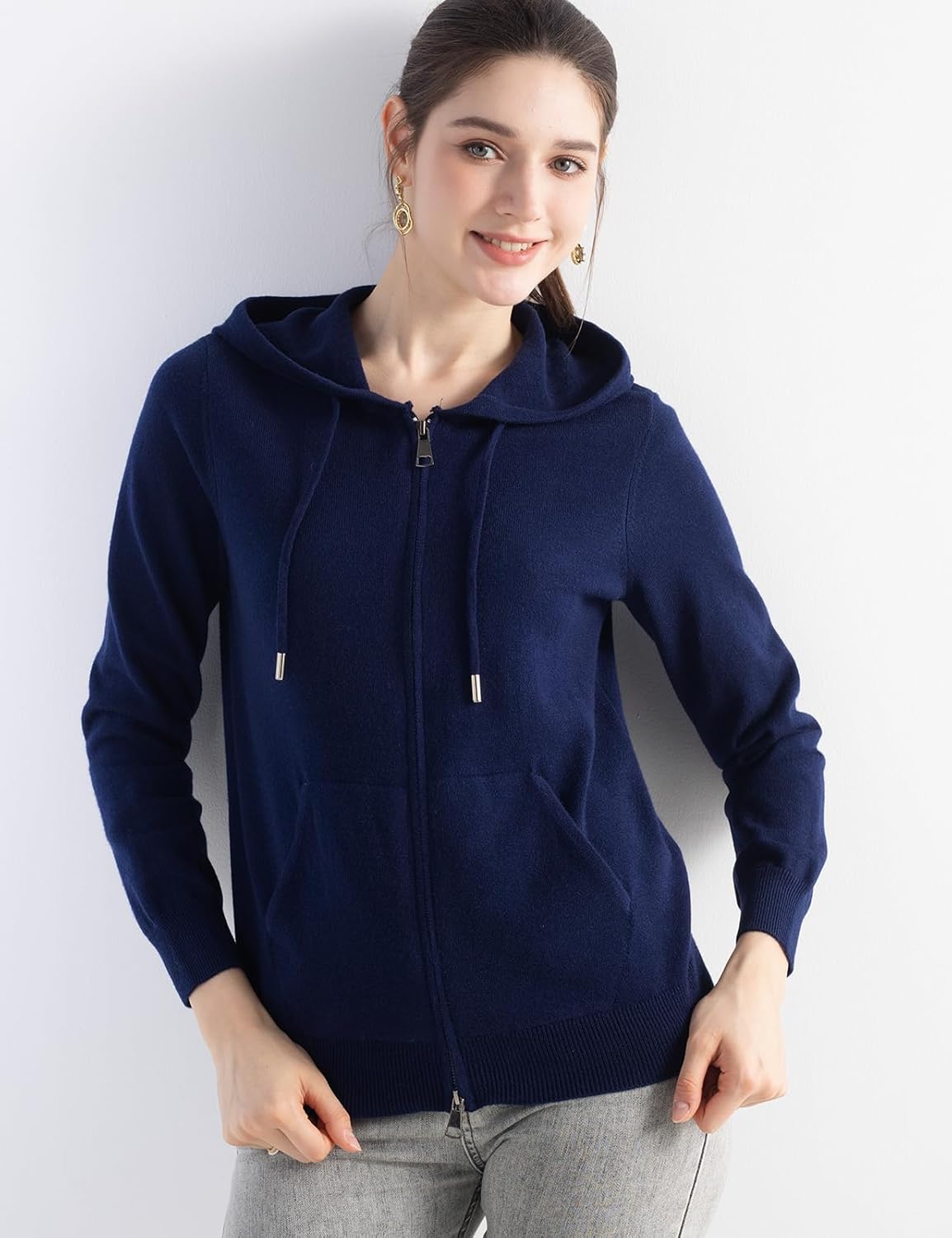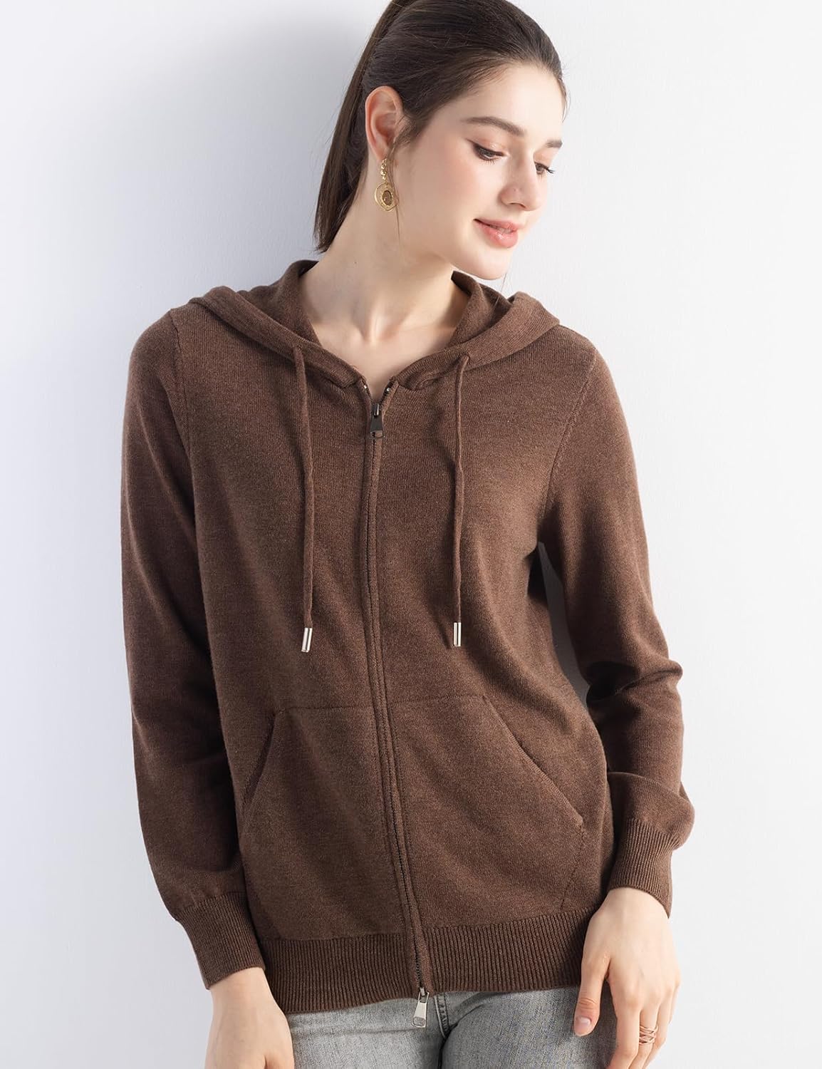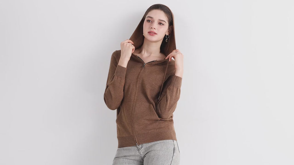 レディースメリノウールブレンドカーディガン2025秋冬のジッパースウェットシャツクルー首長袖ニットフード付きカーディガン