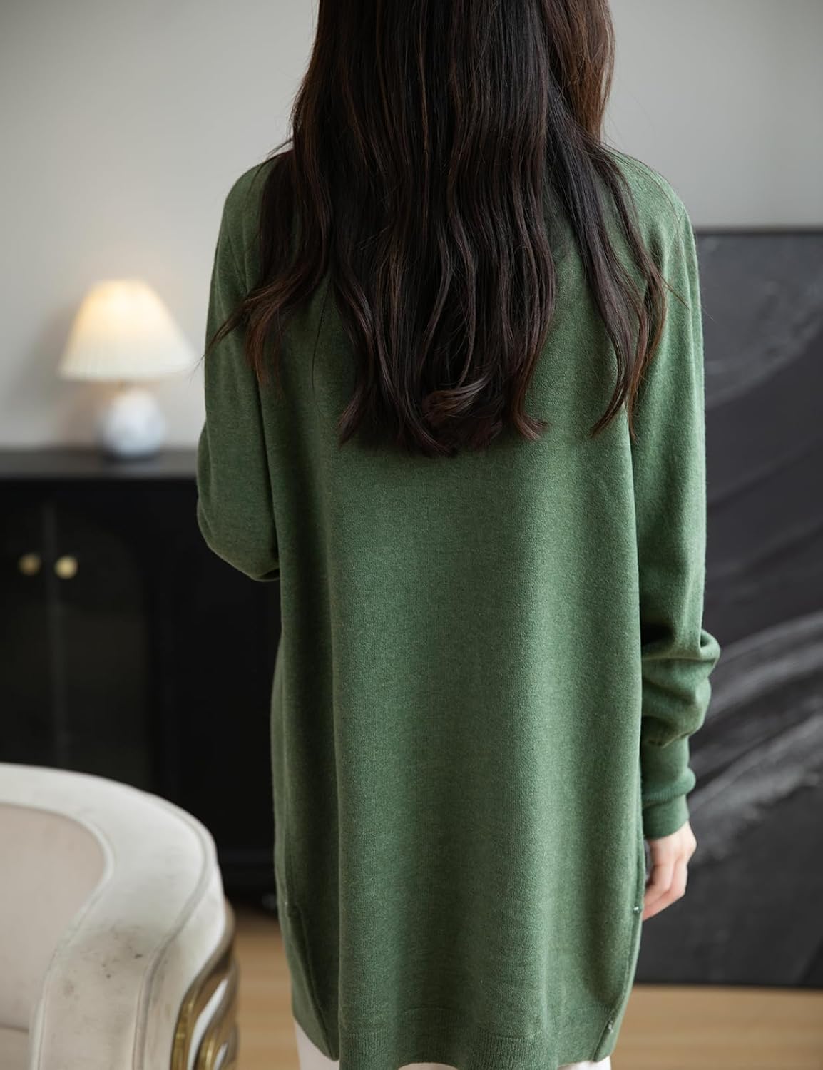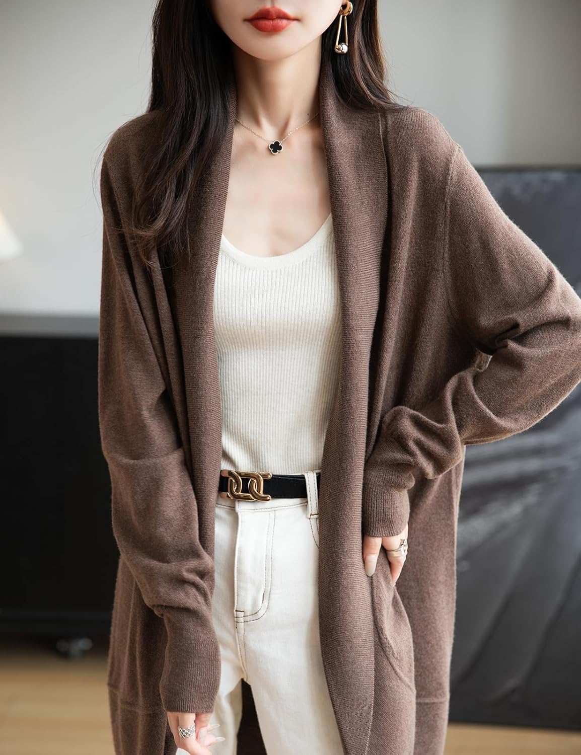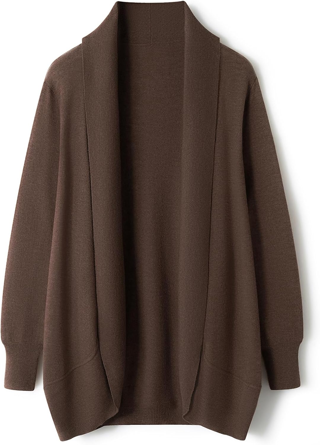 女子メリノウールブレンドカーディガンセーター2025秋冬のカジュアルオープンフロントロングスリーブウォームソフトニットカーディガン