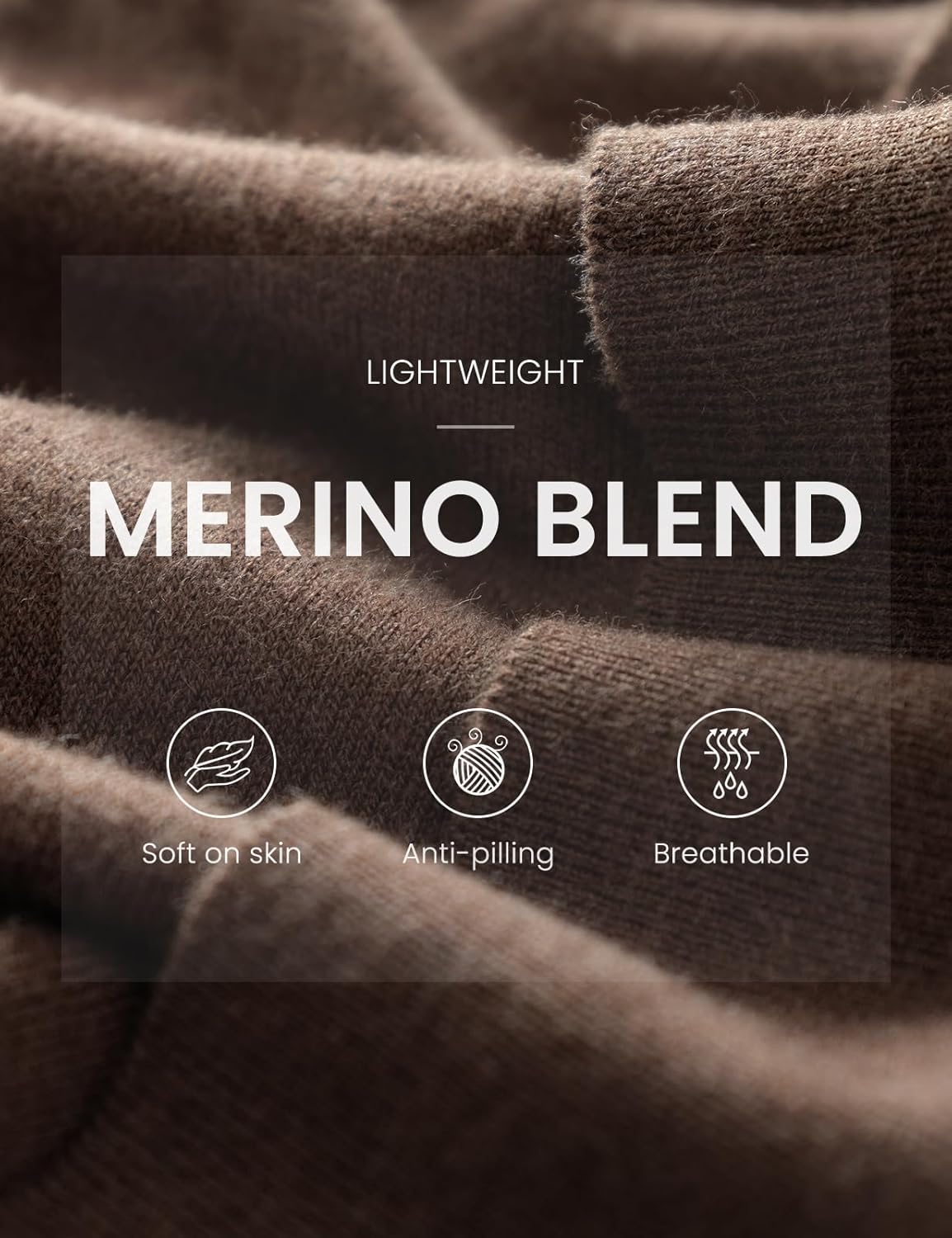- 素材:このセーターは、メリノウール5.9%、抗ピリングナイロン40.4%、抗ピリングアクリル29.1%、リサイクルポリエステル24.6%の混紡素材を使用しています。メリノウールが暖かさをもたらし、ナイロンとアクリルが持続性のある滑らかな肌触りを実現。繰り返し着用しても毛羽立ちや毛玉ができにくいのが特徴です。リサイクルポリエステルは耐久性を高め、通気性と吸湿発散性も向上させ、一日中快適な着心地をキープします。