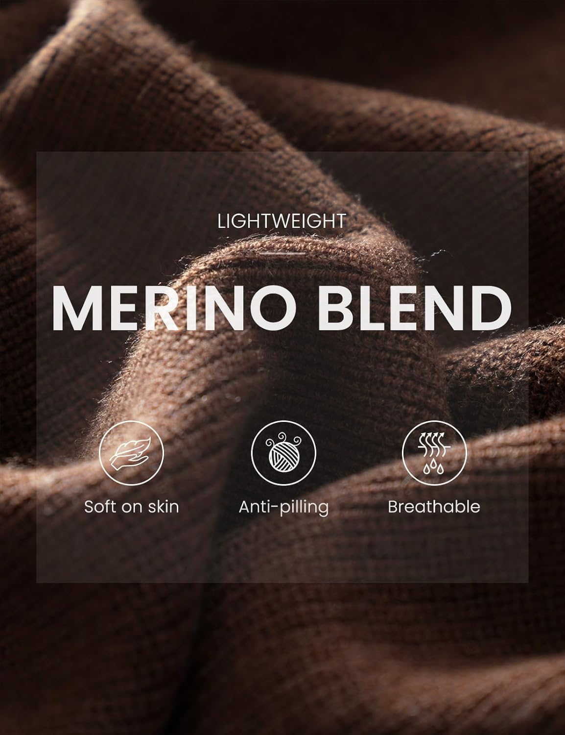 - 素材:このセーターは、メリノウール5.9%、抗ピリングナイロン40.4%、抗ピリングアクリル29.1%、リサイクルポリエステル24.6%の混紡素材を使用しています。メリノウールが暖かさをもたらし、ナイロンとアクリルが持続性のある滑らかな肌触りを実現。繰り返し着用しても毛羽立ちや毛玉ができにくいのが特徴です。リサイクルポリエステルは耐久性を高め、通気性と吸湿発散性も向上させ、一日中快適な着心地をキープします。