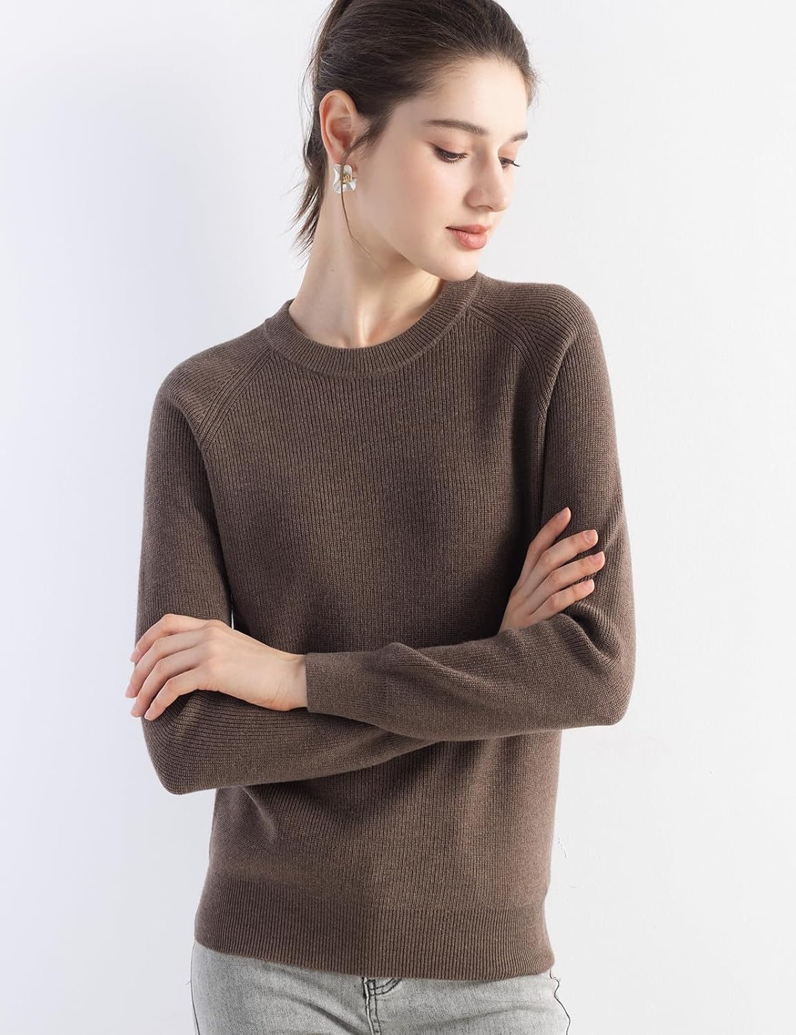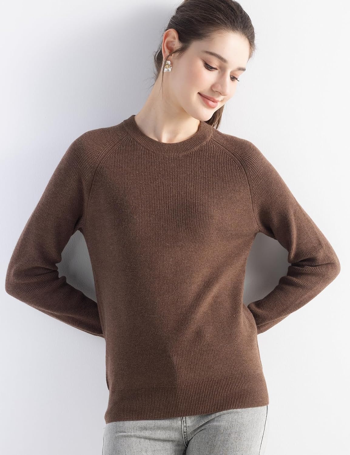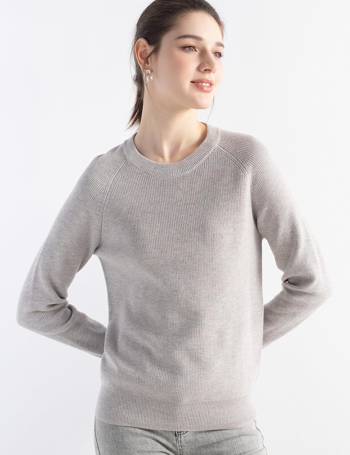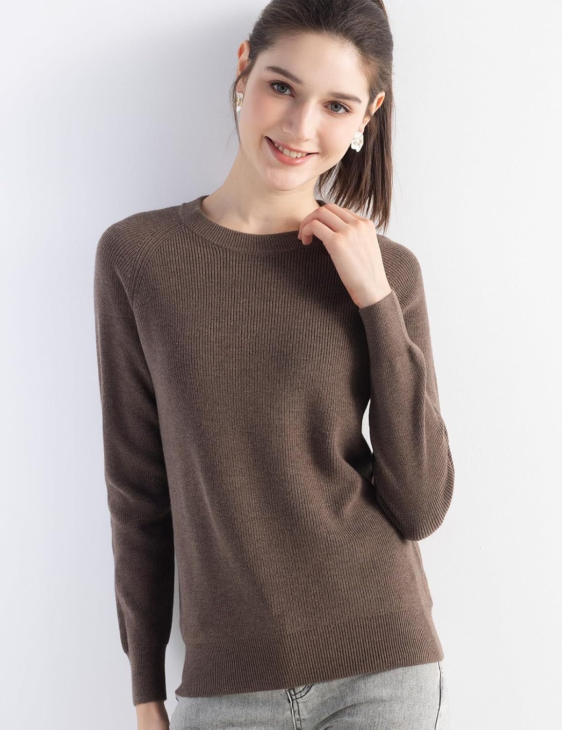 レディースメリノウールブレンドセーター2025秋のカジュアルクルーネックウォームソフトロングスリーブニットプルオーバーセーター