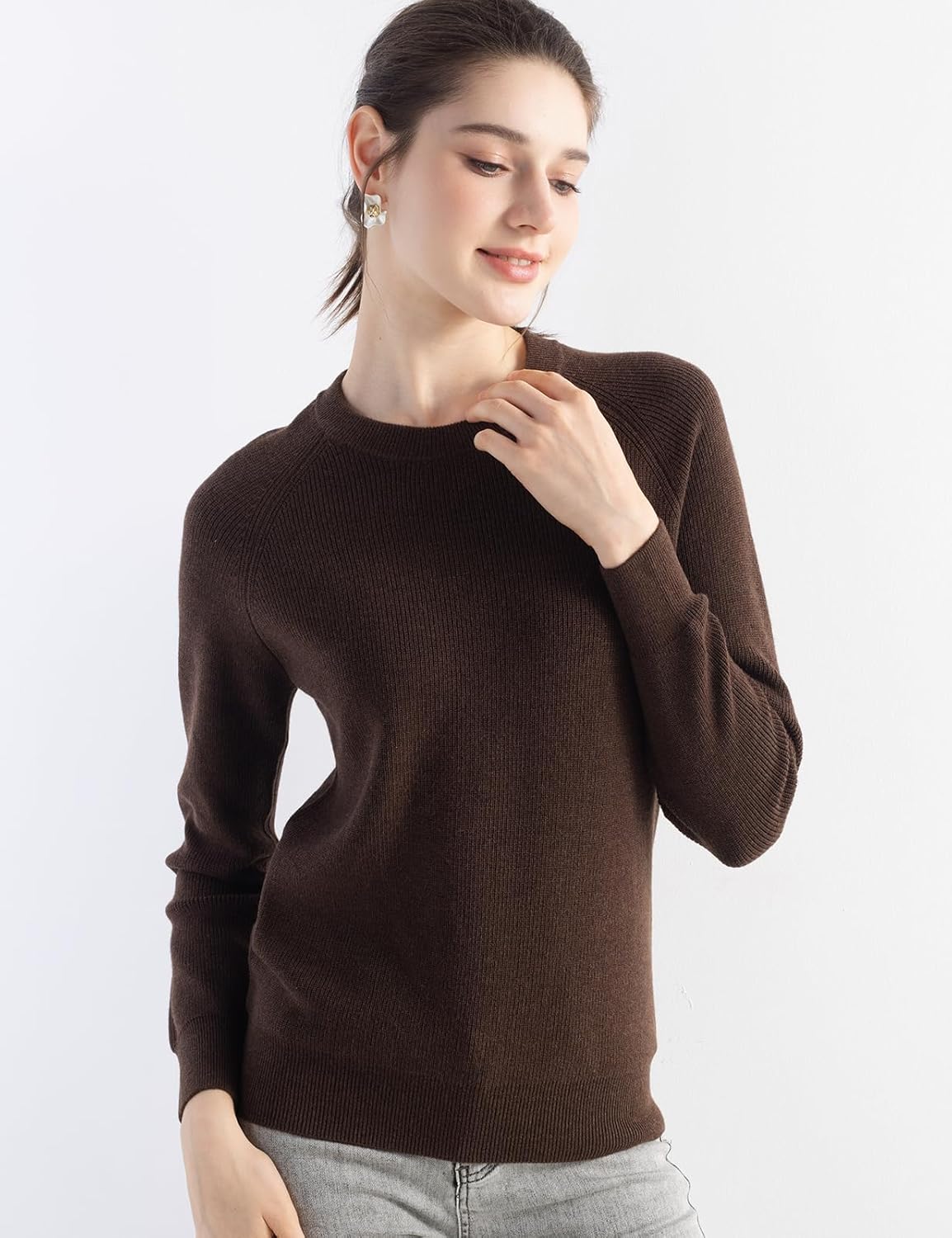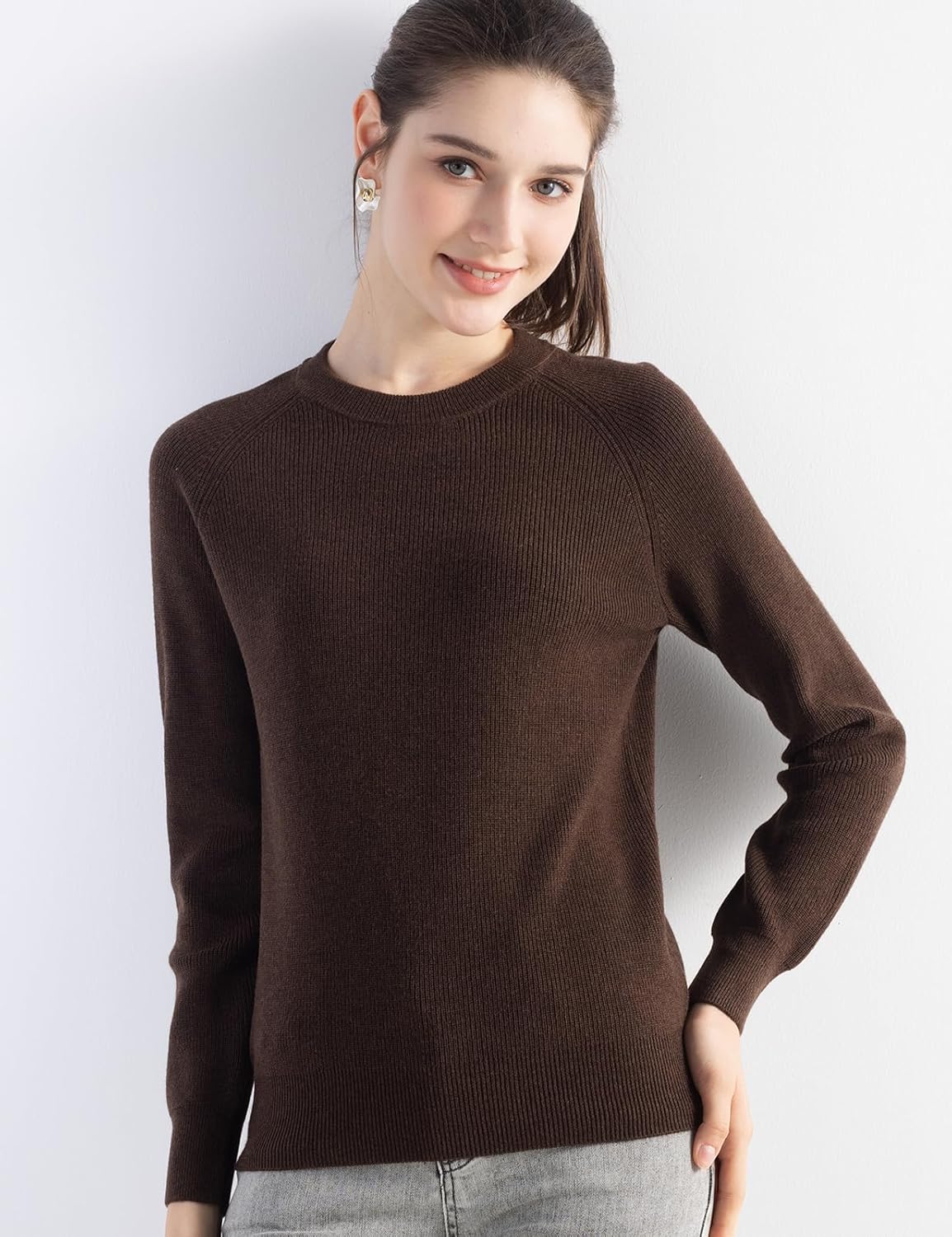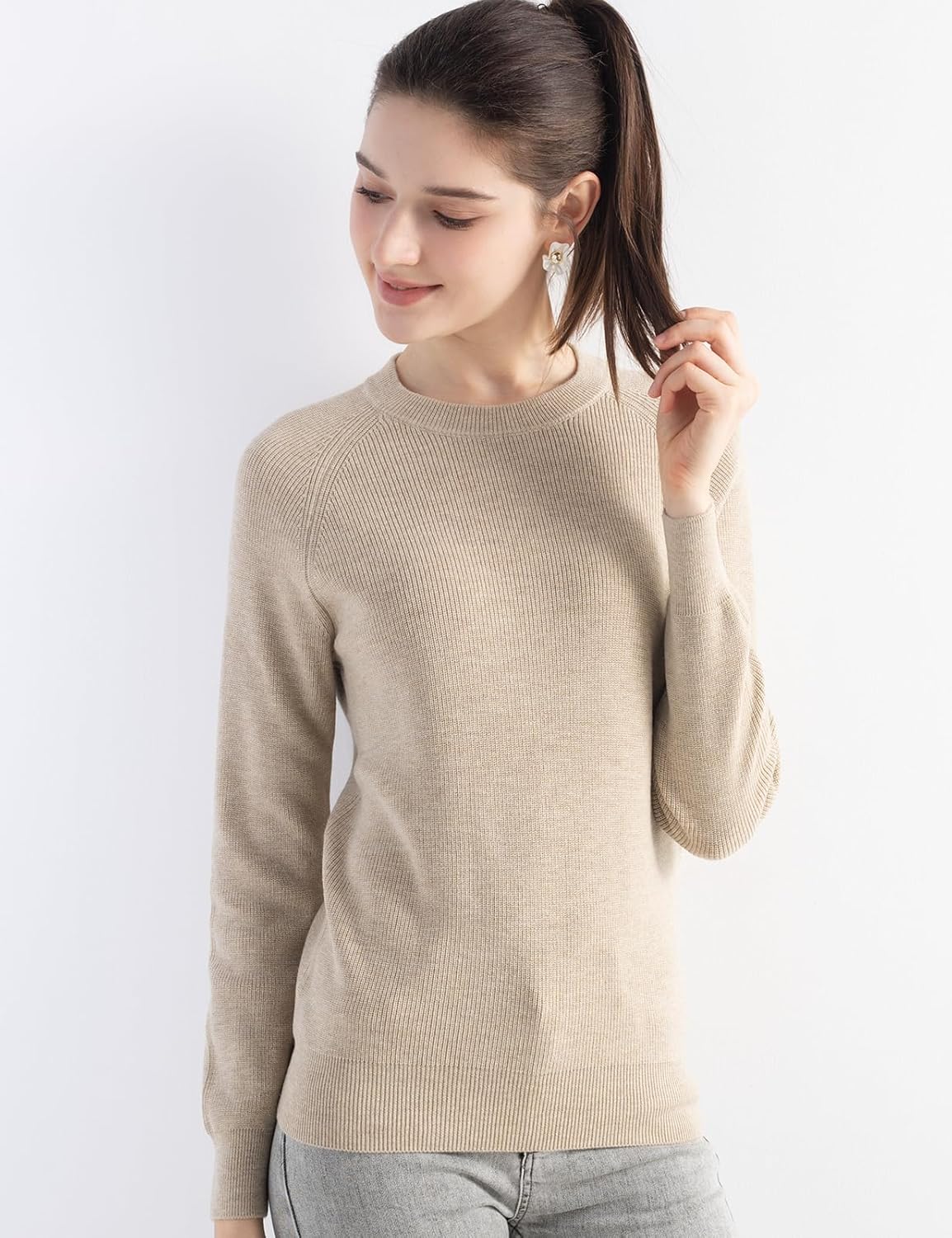 レディースメリノウールブレンドセーター2025秋のカジュアルクルーネックウォームソフトロングスリーブニットプルオーバーセーター