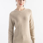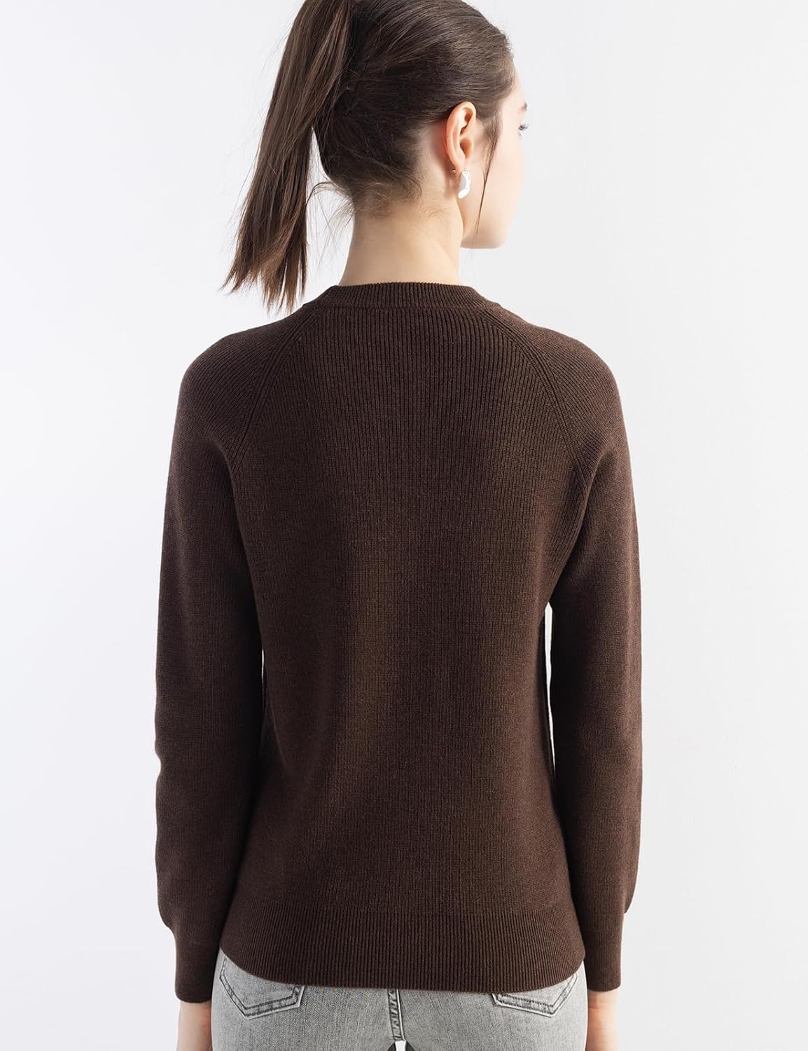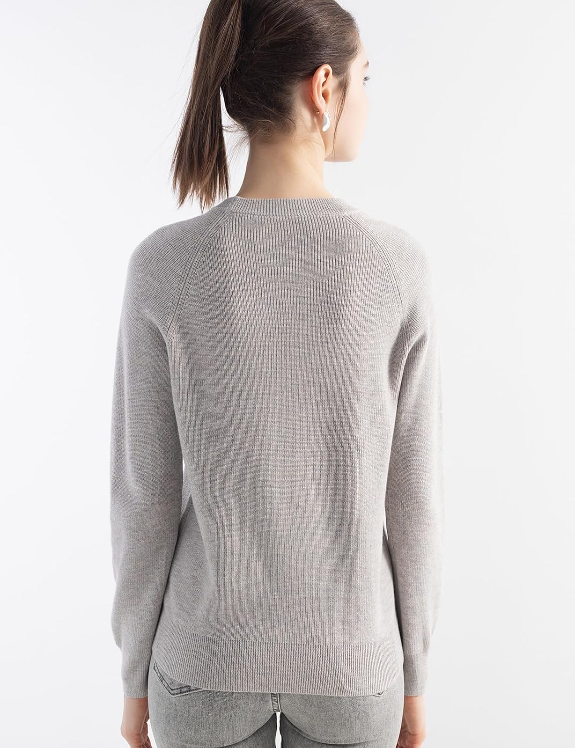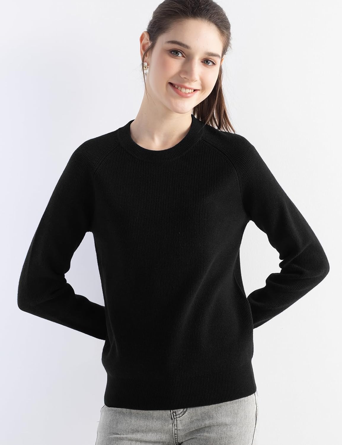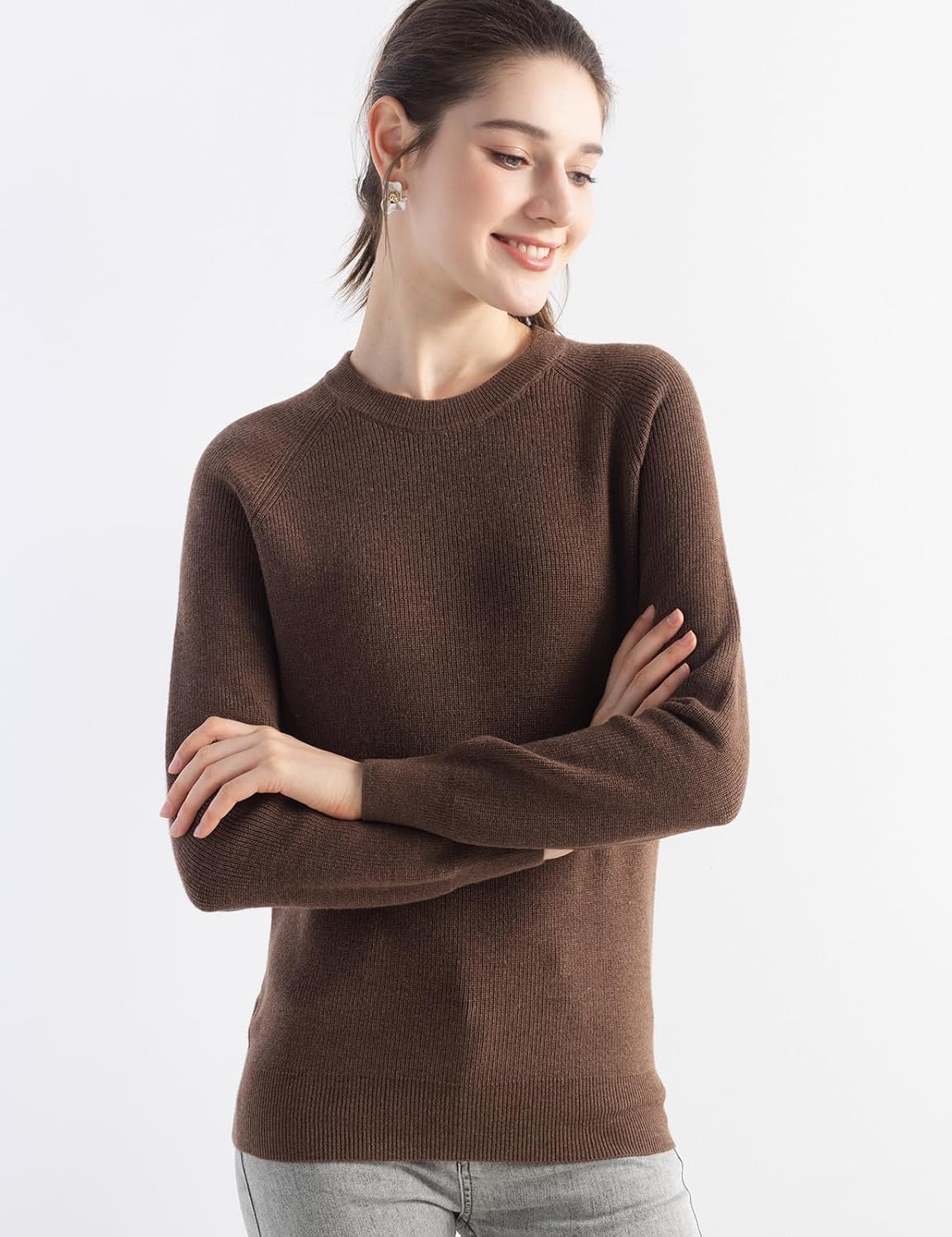 レディースメリノウールブレンドセーター2025秋のカジュアルクルーネックウォームソフトロングスリーブニットプルオーバーセーター