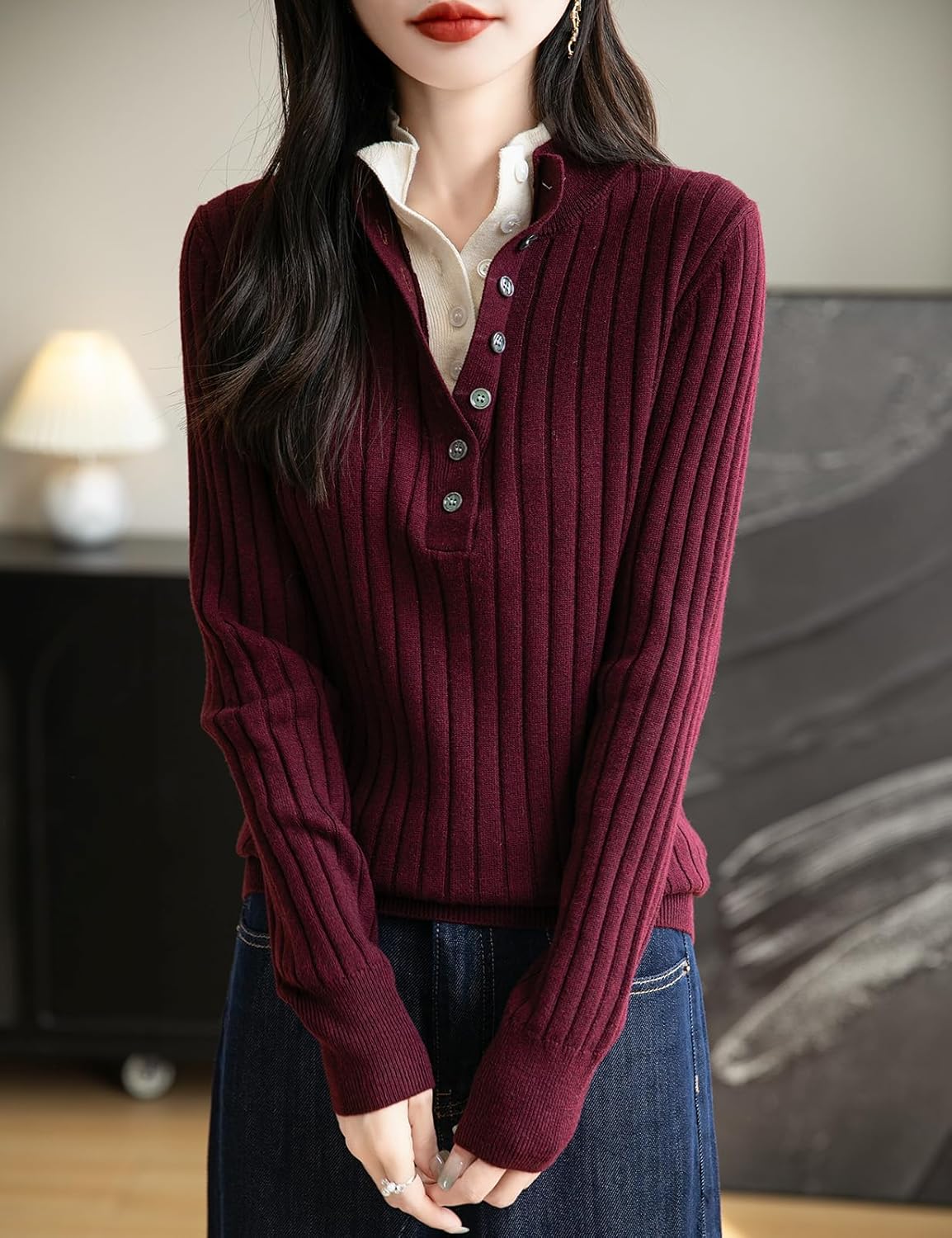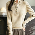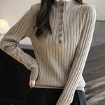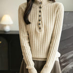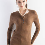 女性のメリノウールブレンドセーター2025秋冬の偽の二枚カラーブロックスタンドカラー長袖ニットプルオーバー