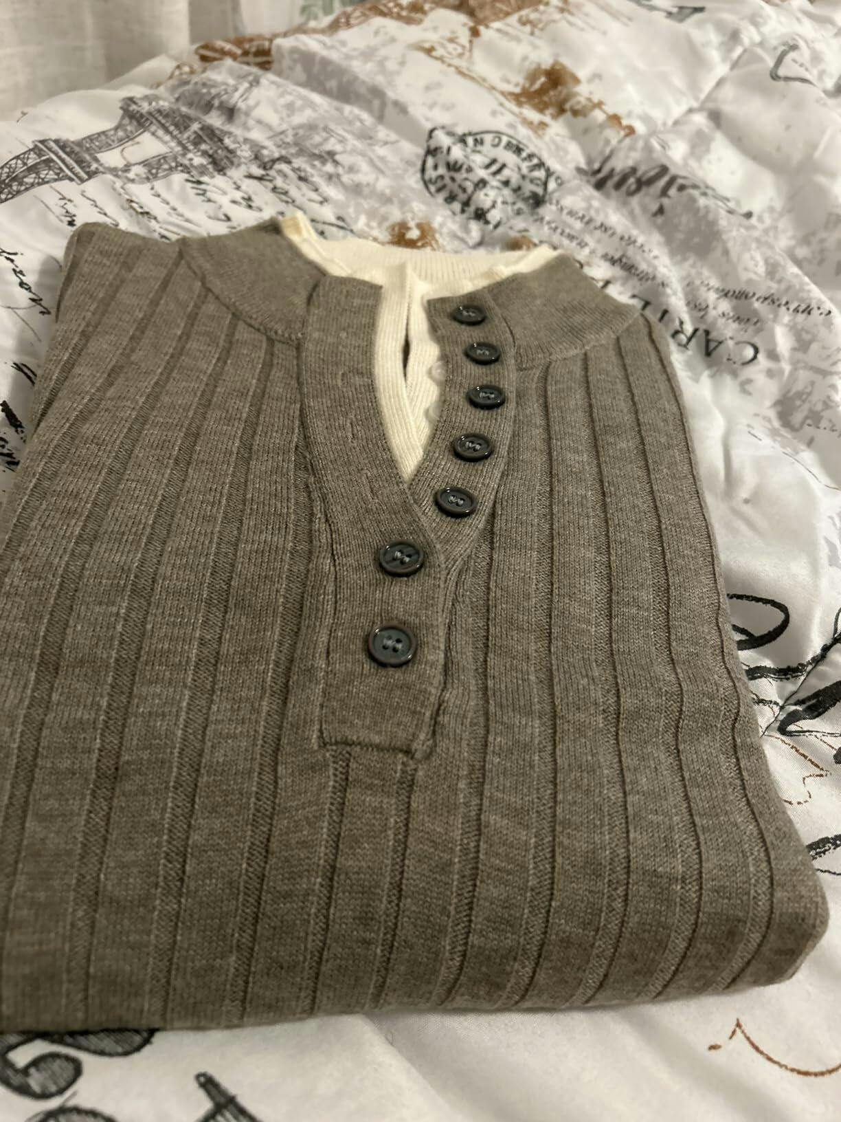 This faux double layer sweater is cute but it runs very small and extremely fitted and tight. I went with a medium, which is my normal size, but it is definitely too small. Quality is fair. It is lightweight. It would be comfortable if it ran true to size. It is soft and thin. Easy to wash.