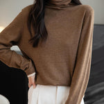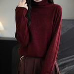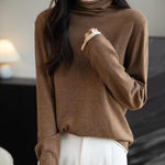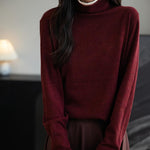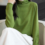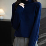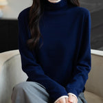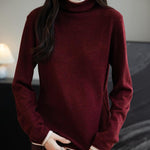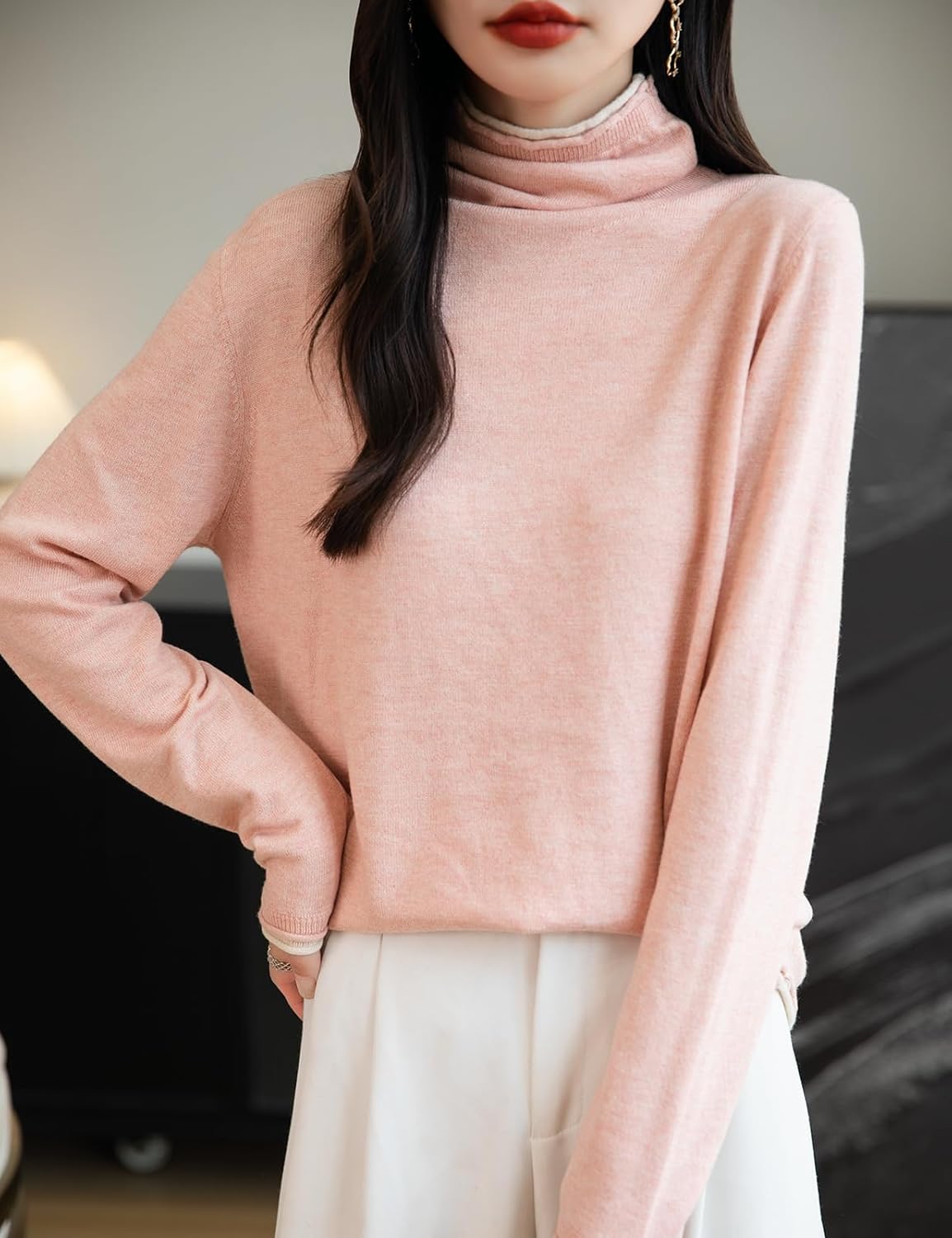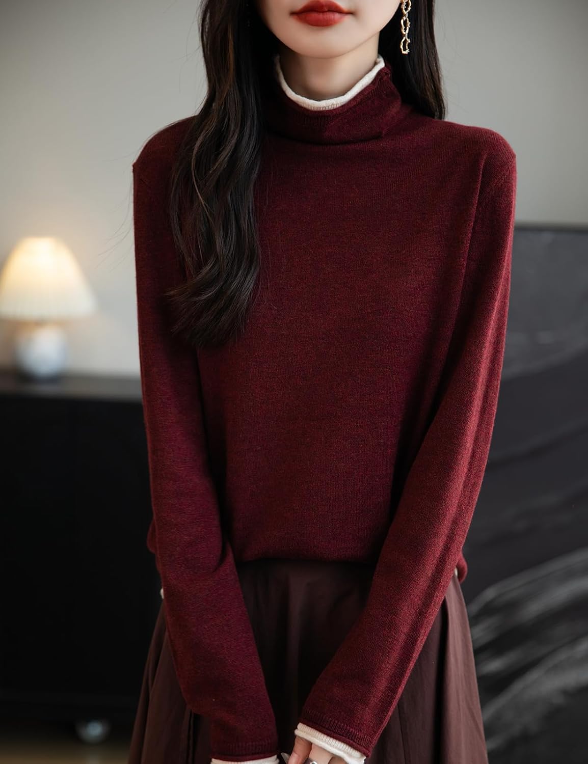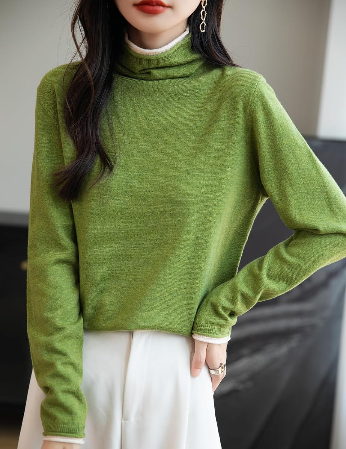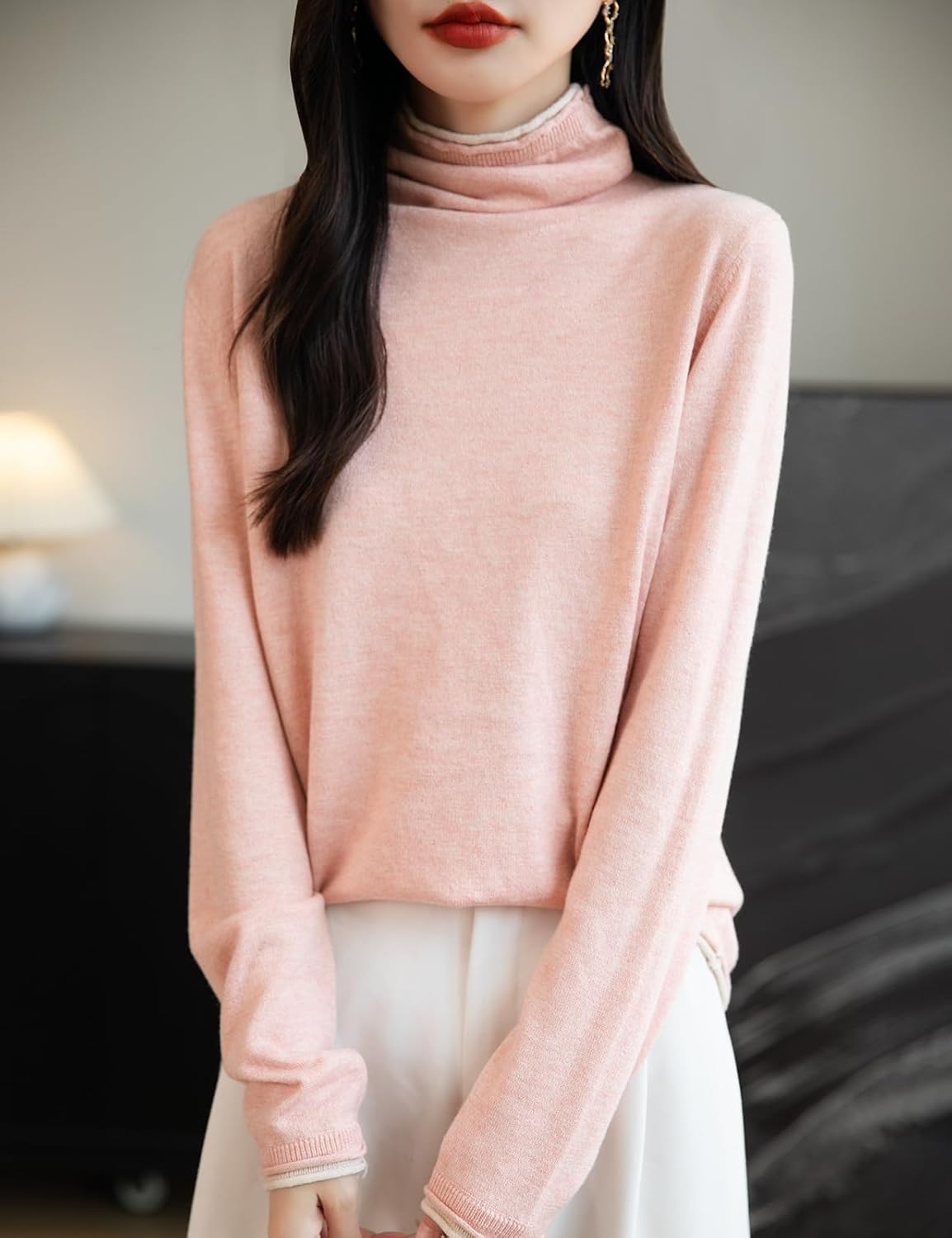 女性のメリノウールブレンドセーター2025秋冬の偽の二枚色ブロックタートルネック長袖ニットプルオーバー