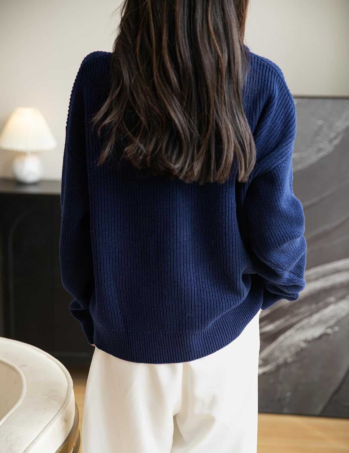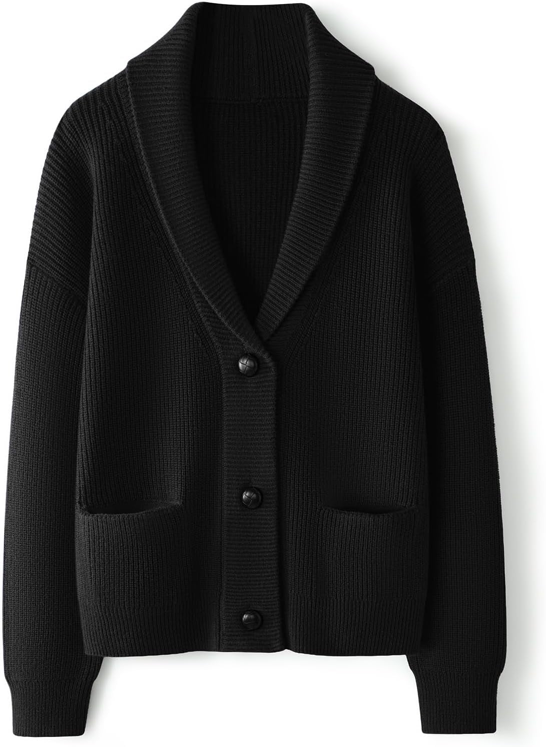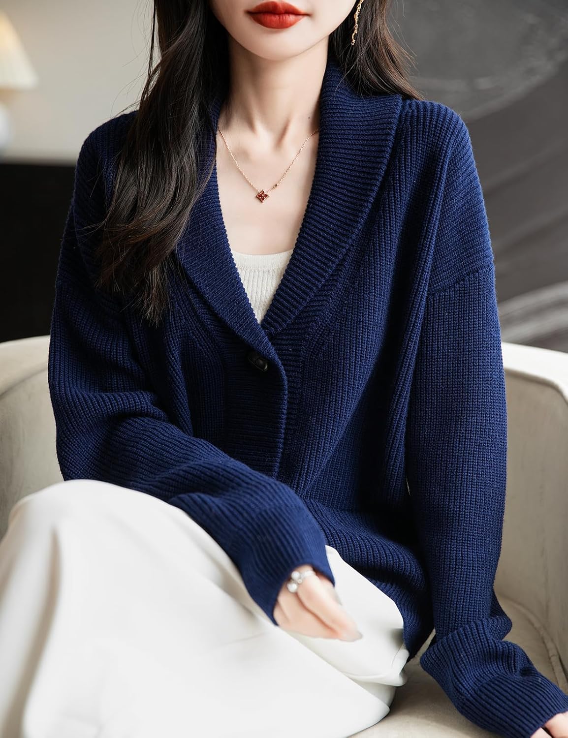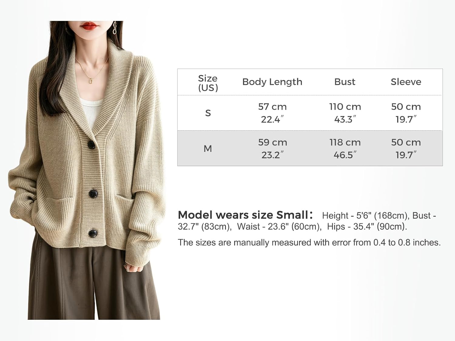 レディースメリノウールブレンドセーターVネック2025秋の冬のラペルボタンダウン長袖ニットカーディガンとポケット