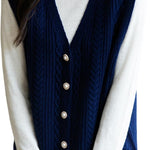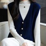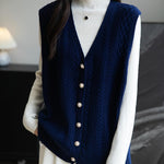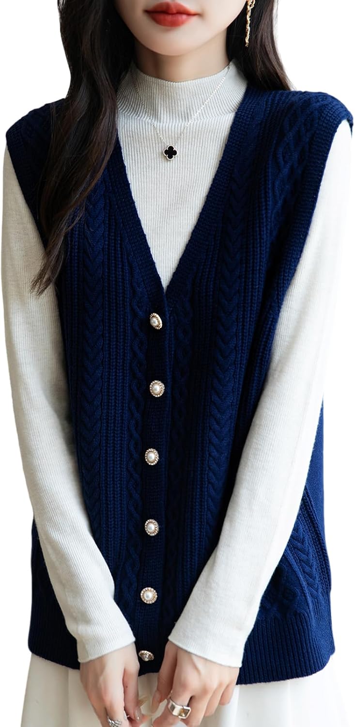 女性のメリノウールブレンドセーターベスト2025秋の冬のカジュアルVネックケーブルノースリーブニットカーディガン付きボタン