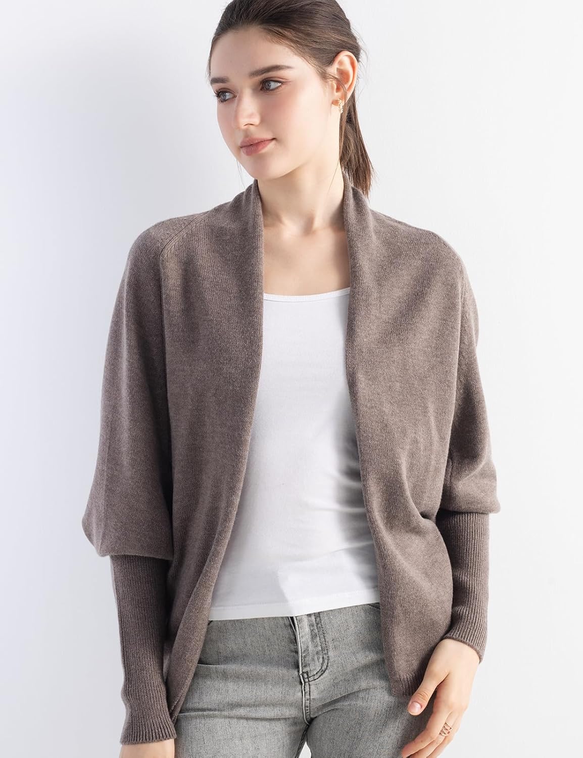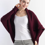 女子メリノウール特大のカーディガン2025秋冬のオープンフロントバットウィングスリーブリブニット前かがみカーディガンセーター