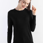 レディースメリノウールセーター2025秋の冬の乗組員長い袖の最初のラインシームレスなニットセーターを着用する準備ができています