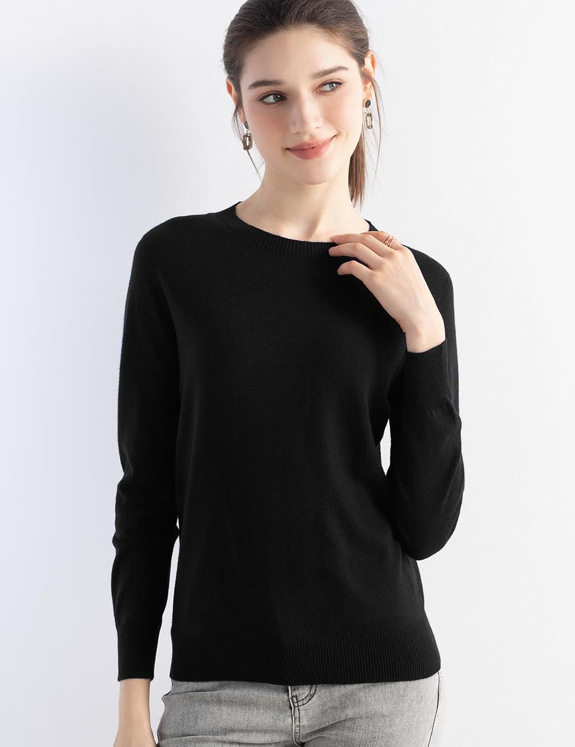I love this sweater for its elegance and sophistication. It looks much more expensive than its current cost of $19.99. The fabric feels soft, warm, and does not shed. The quality of the sweater is excellent. The weight of the sweater is ideal for me as I prefer sweaters that are lightweight and can be worn throughout various seasons. The gray color whispers quiet luxury. Although I was recommended a medium size, I sized up to a large for a looser fit. The large size ended up being a good fit. I would recommend sizing up at least one size. It was difficult to choose one color as this sweater is offered in nine (9) gorgeous colors.