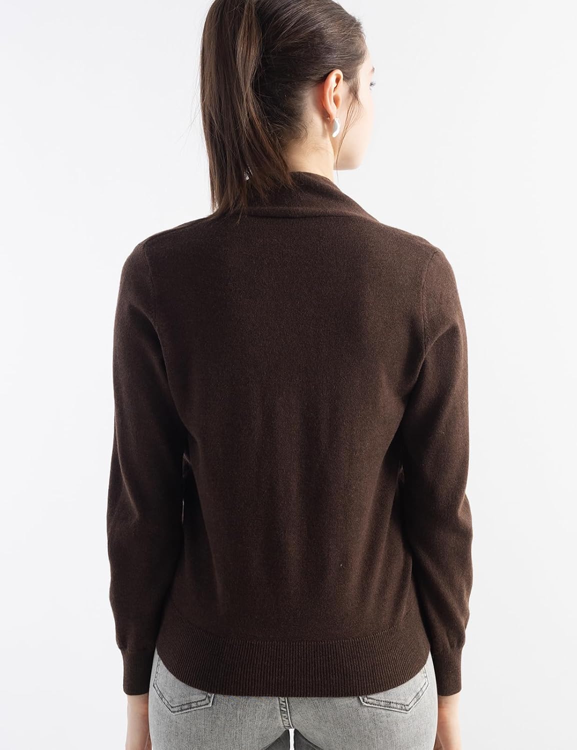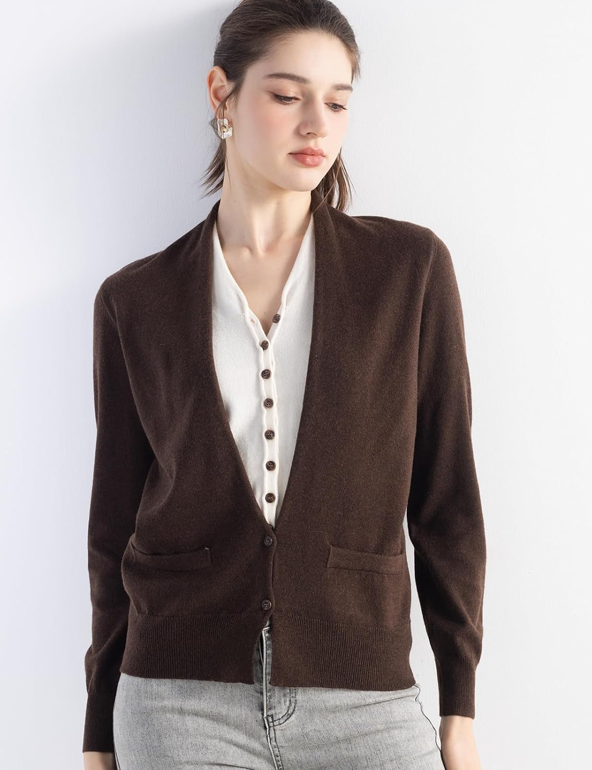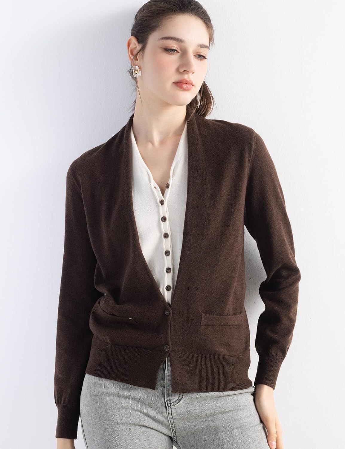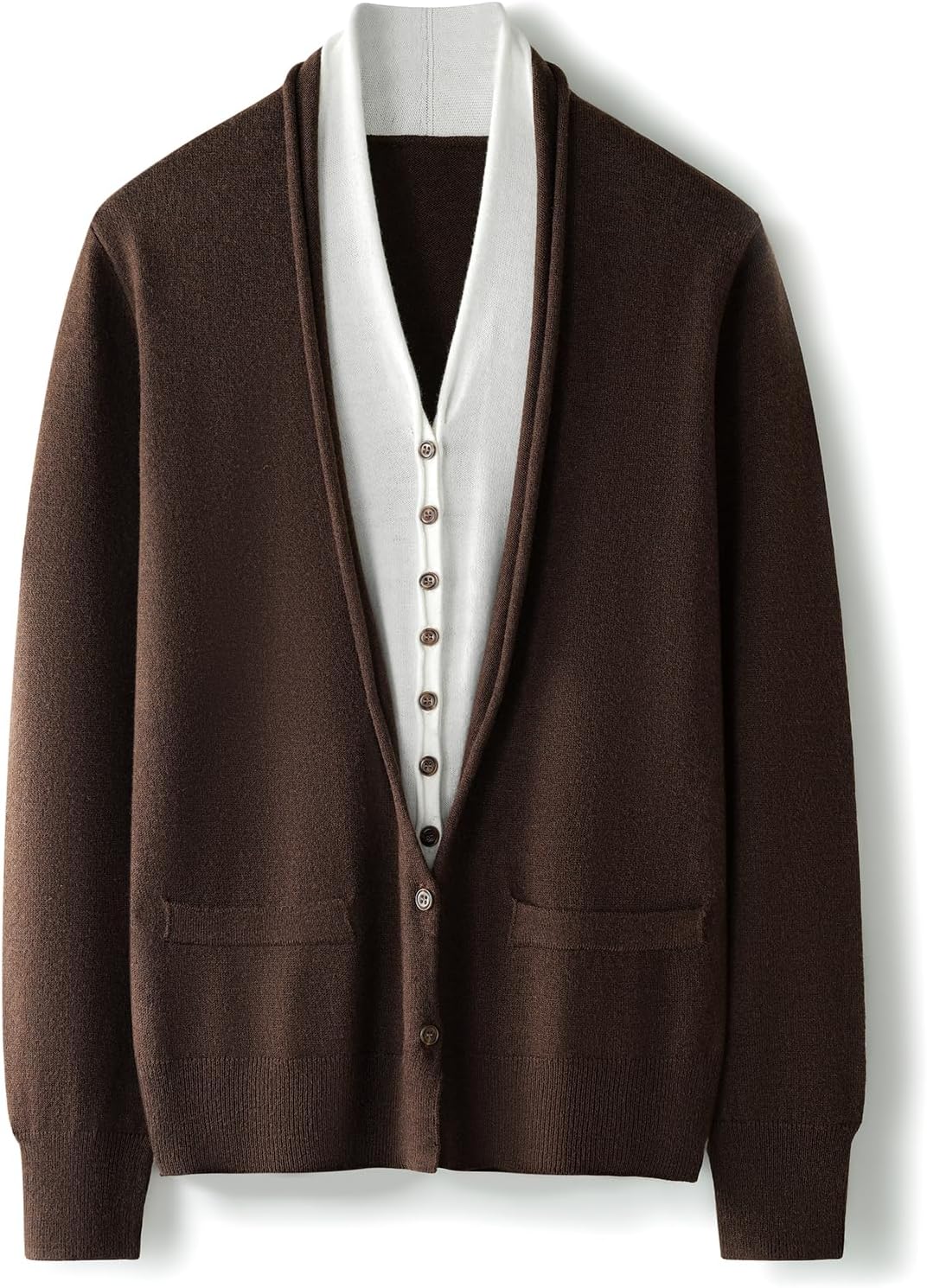 This Ciovkis merino wool blend sweater is a beautiful piece for cooler weather. The “fake two-piece” design is clever — it gives the layered cardigan look without the bulk of wearing two separate items. The color block style in coffee is classy and works with just about anything in my wardrobe.The fabric is soft, warm, and has that nice merino wool feel without being itchy. The medium fit is true to size, flattering but not too tight, and the V-neck gives it a slightly dressier edge so it works for casual days or business casual outfits.I’ve washed it once on delicate and it held its shape and color nicely. A great find if you want something versatile, stylish, and practical for fall and winter.