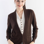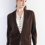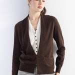 女性のメリノウールセーターフェイクツーピースカーディガン2025秋冬vネックカラーブロック長袖ニットトップス