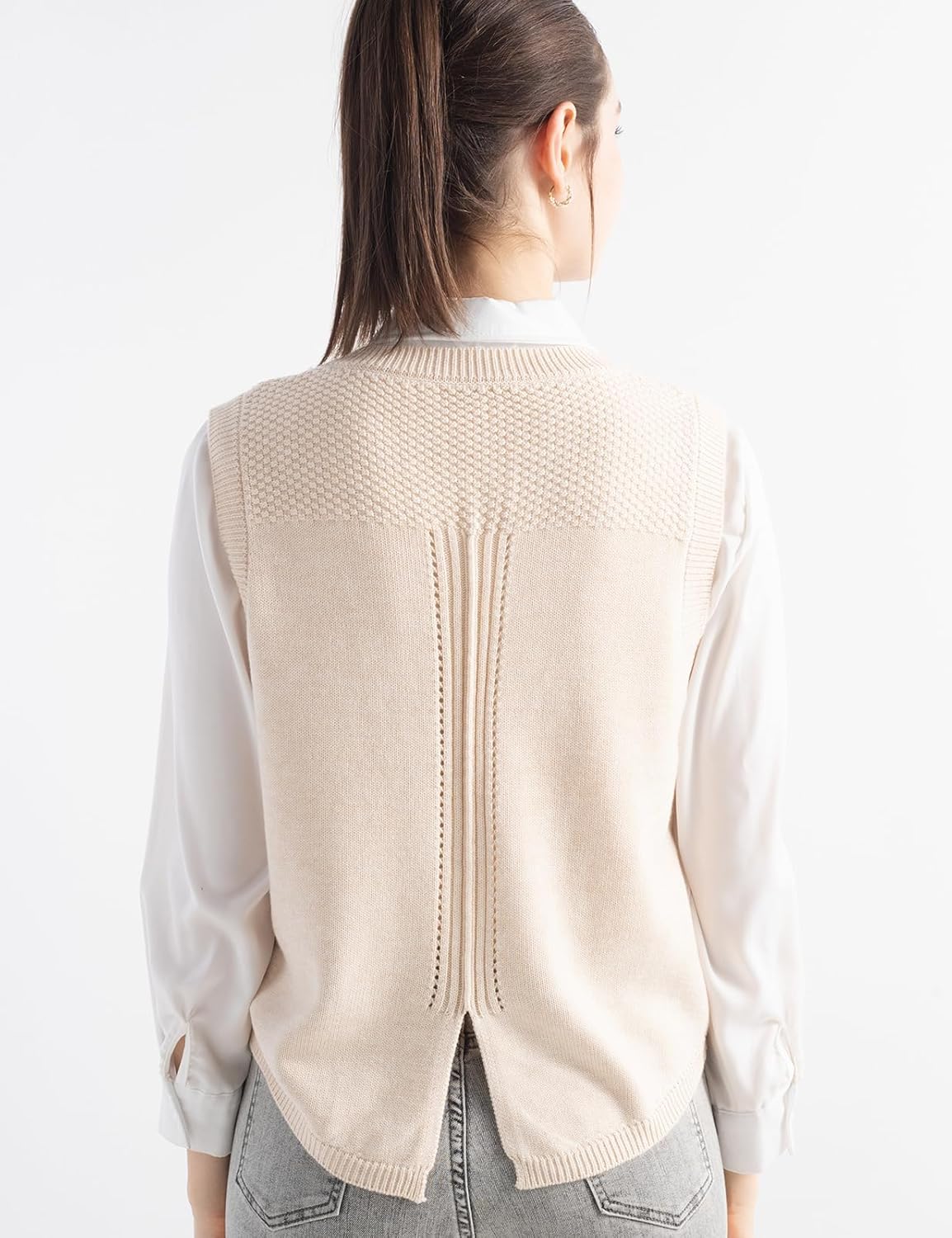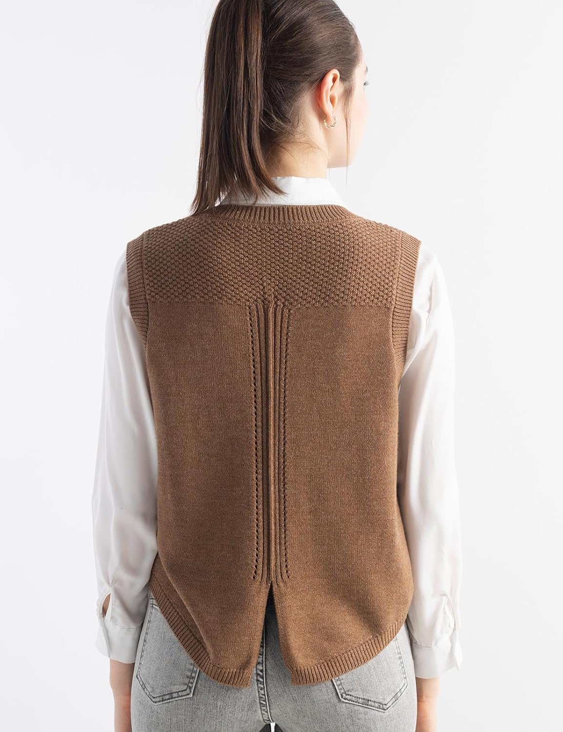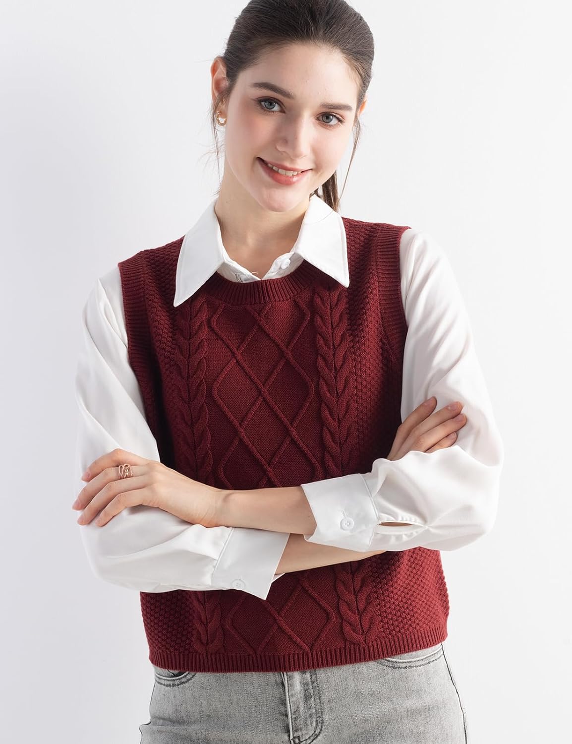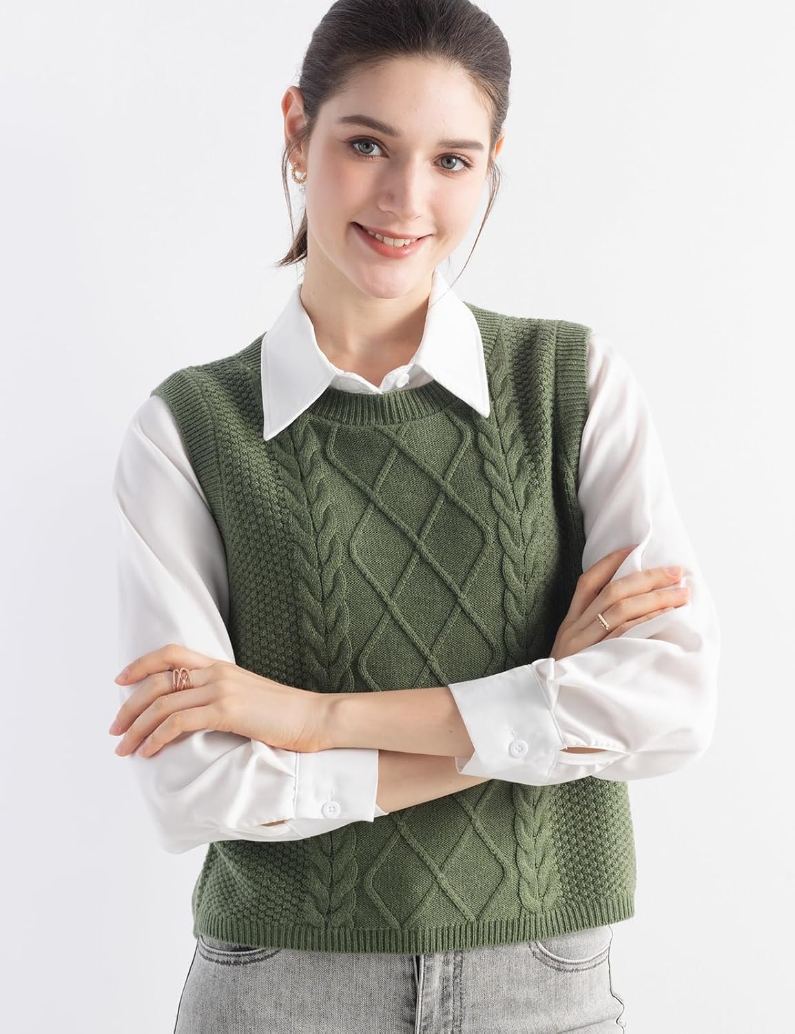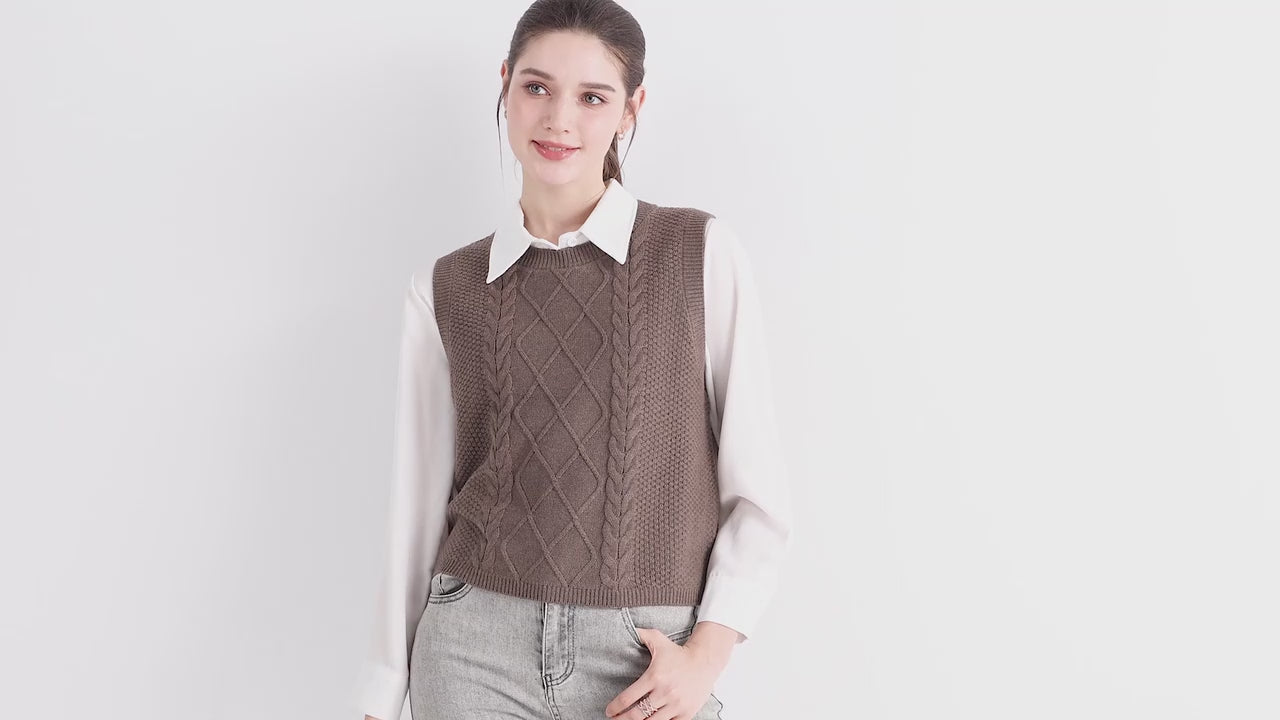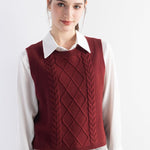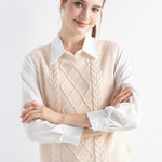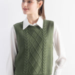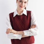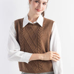 女性のメリノウールセーターベスト2025秋の冬のカジュアルクルーネックケーブルノースリーブニットプルオーバーセーター