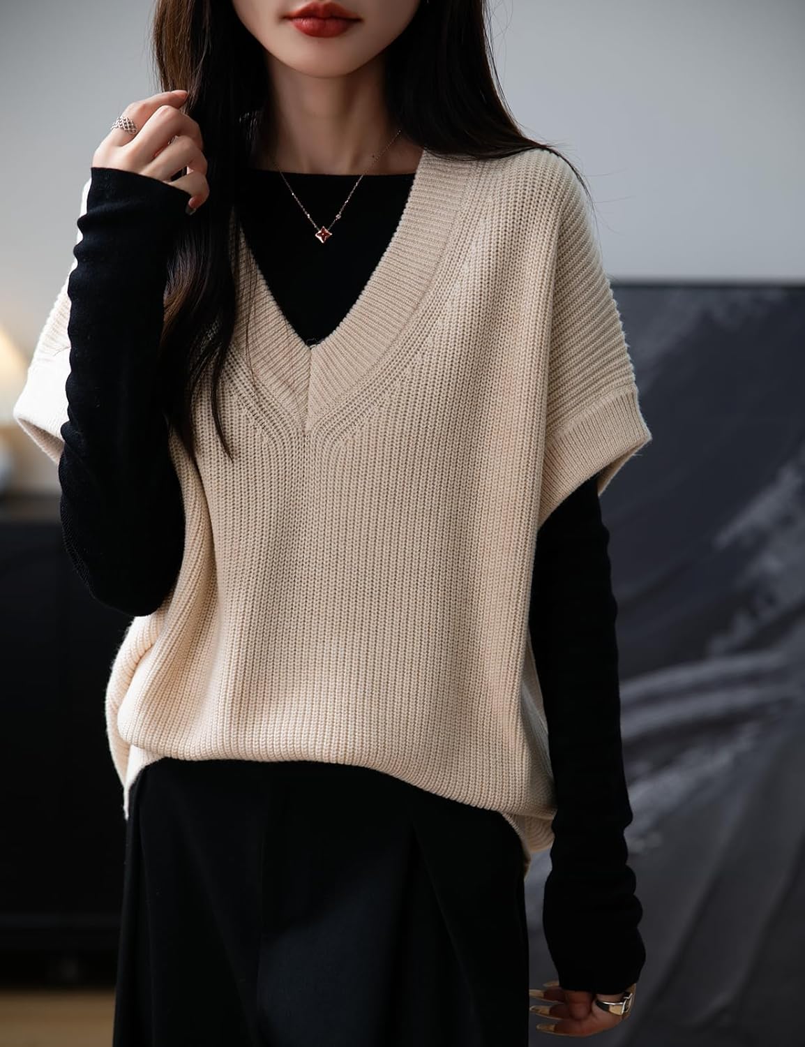 女性のメリノウールセーターベスト2025秋冬のカジュアルvネックノースリーブニットプルオーバーセーター