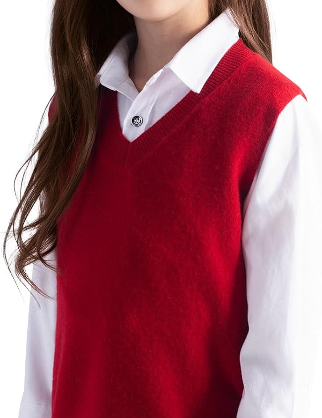 소년들 & 여아용 100% 메리노 울 V넥 민소매 니트 스웨터 조끼