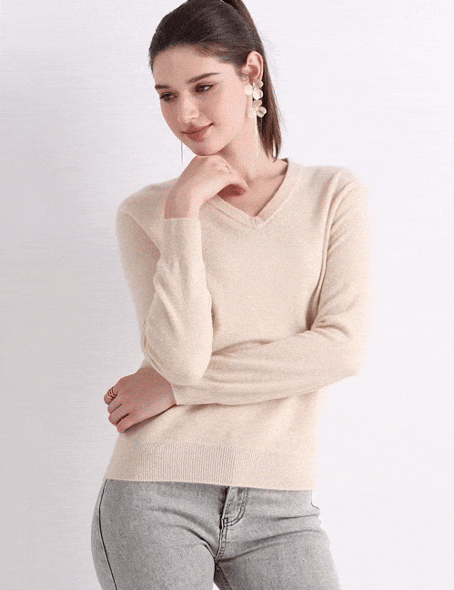 100% 메리노 울 브이넥 심리스 캐주얼 스웨터