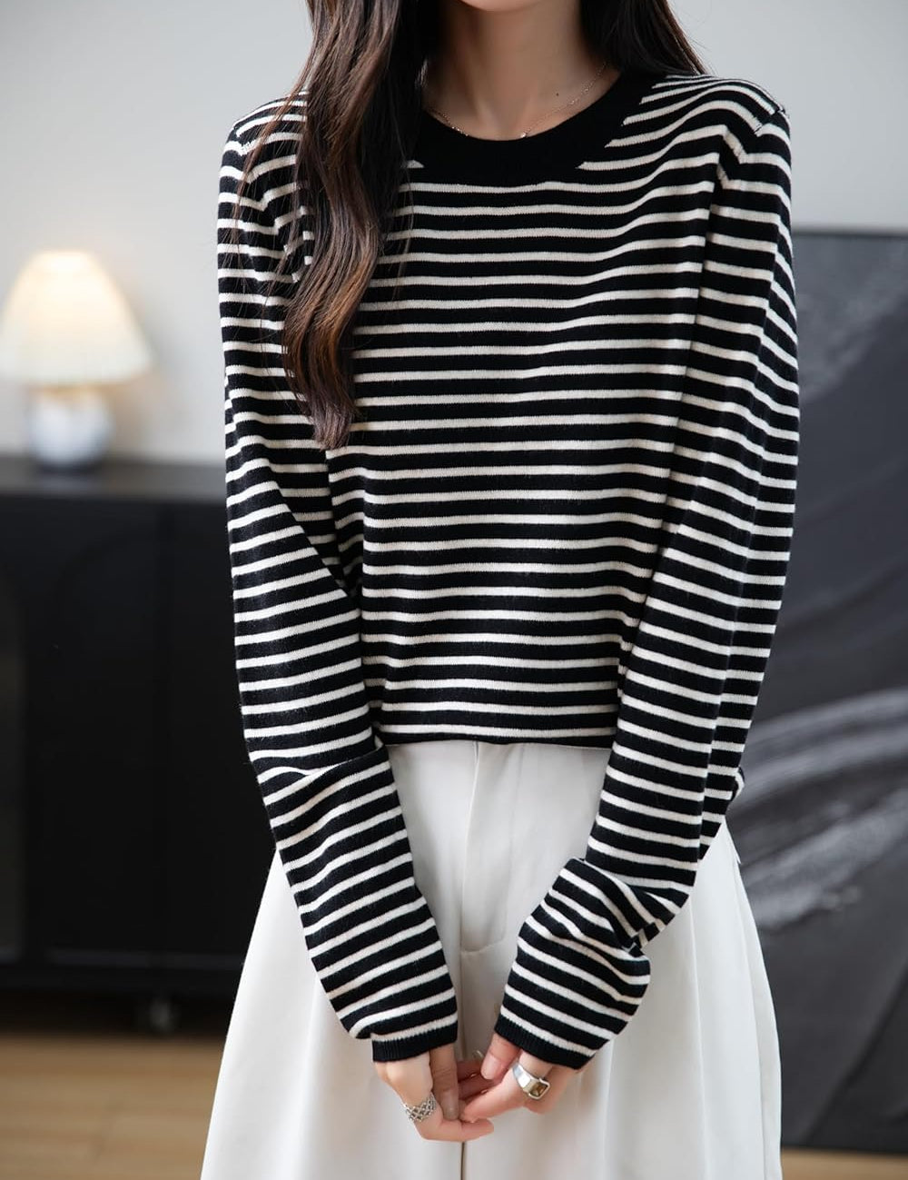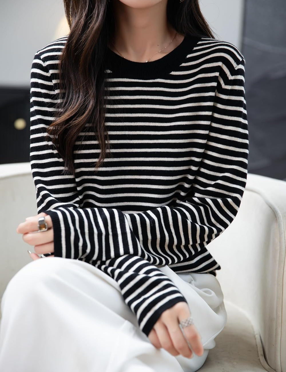 남아용 100% 메리노 울 심리스 크루넥 스웨터