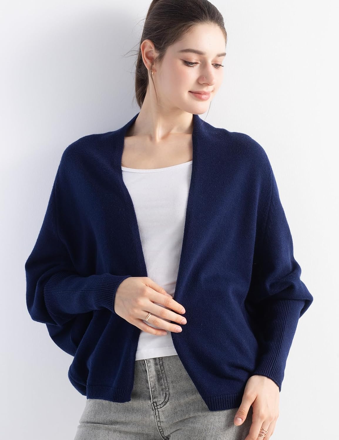 메리노 울 오픈 프론트 배트윙 니트 카디건